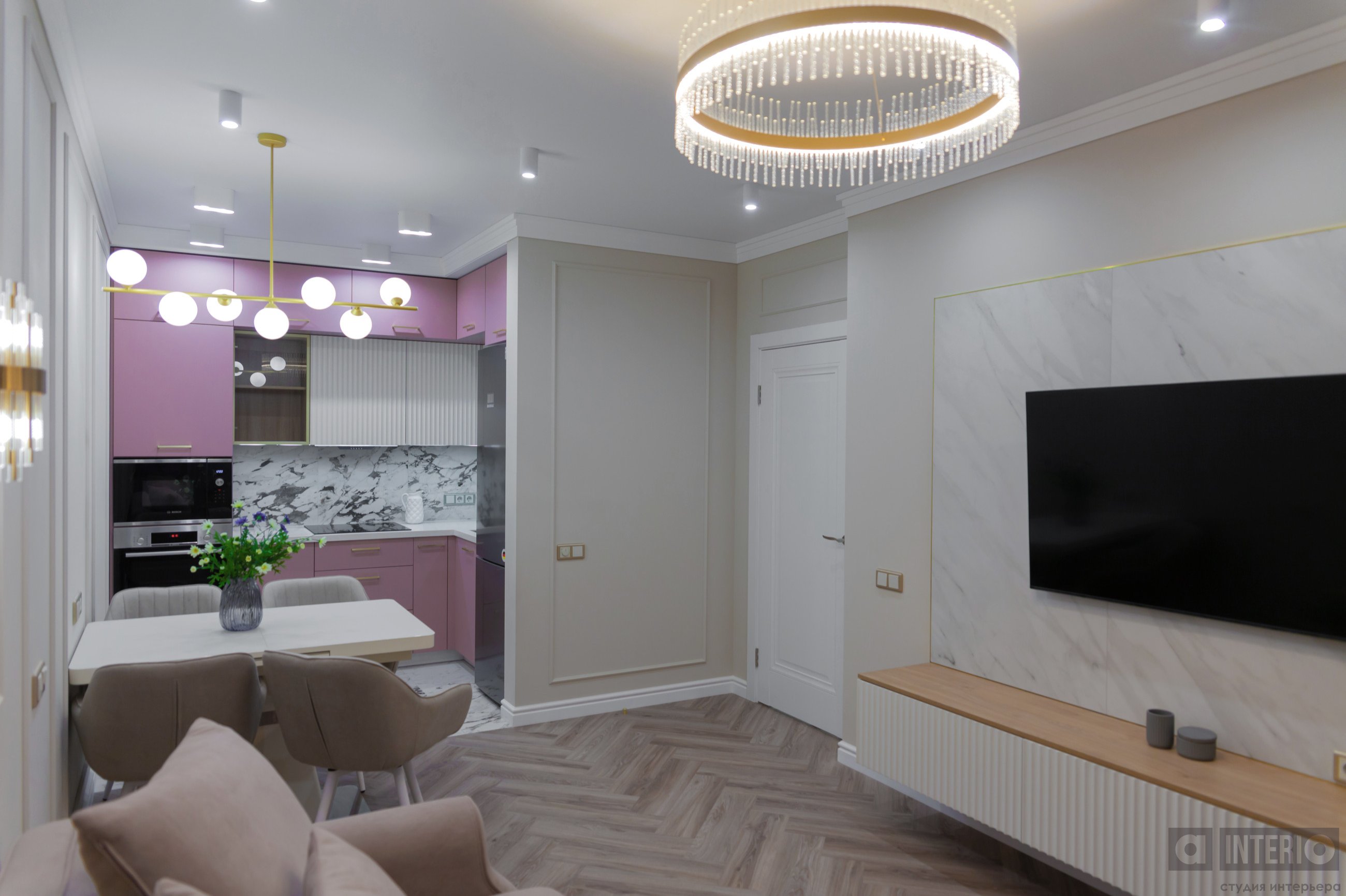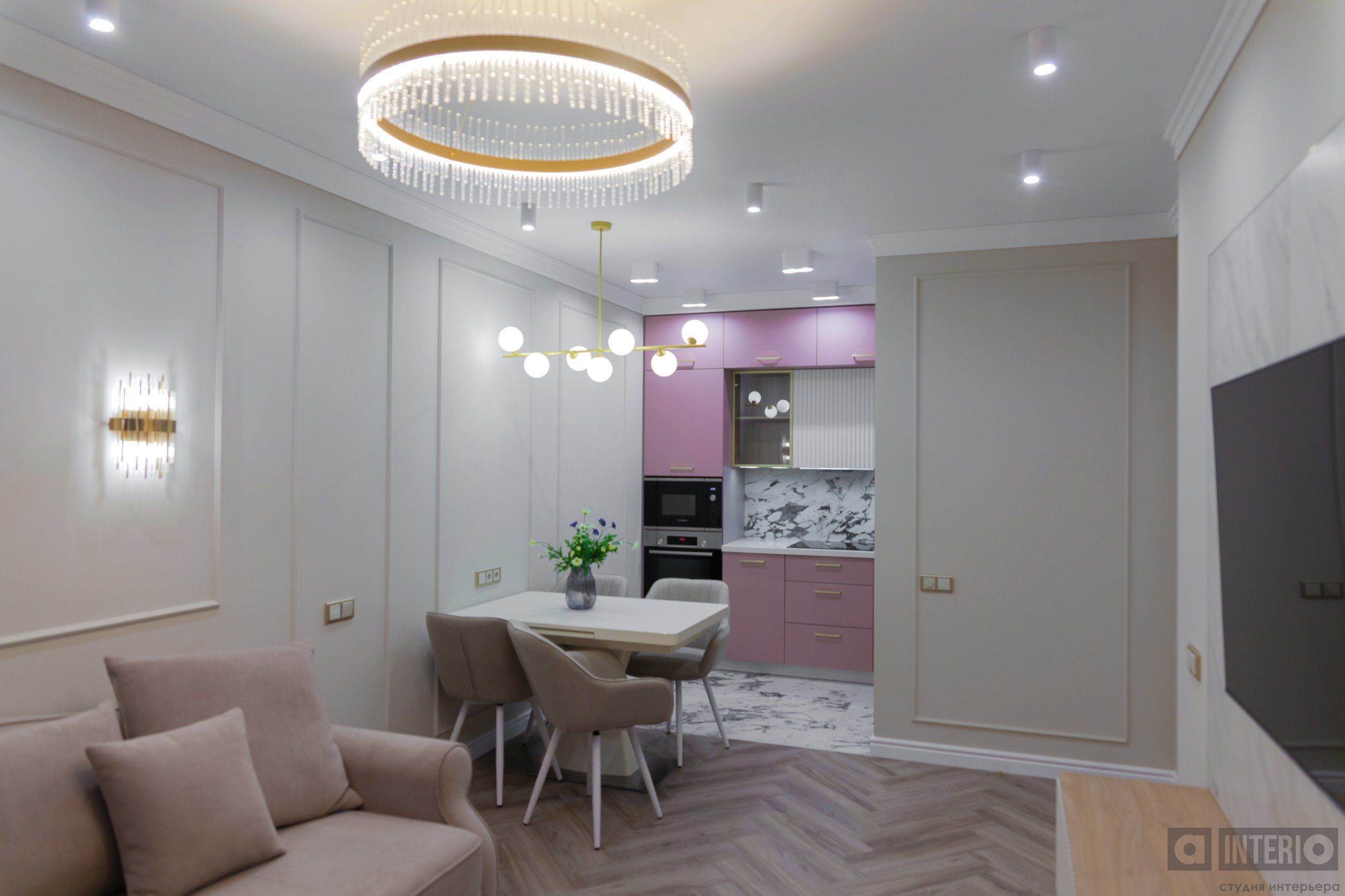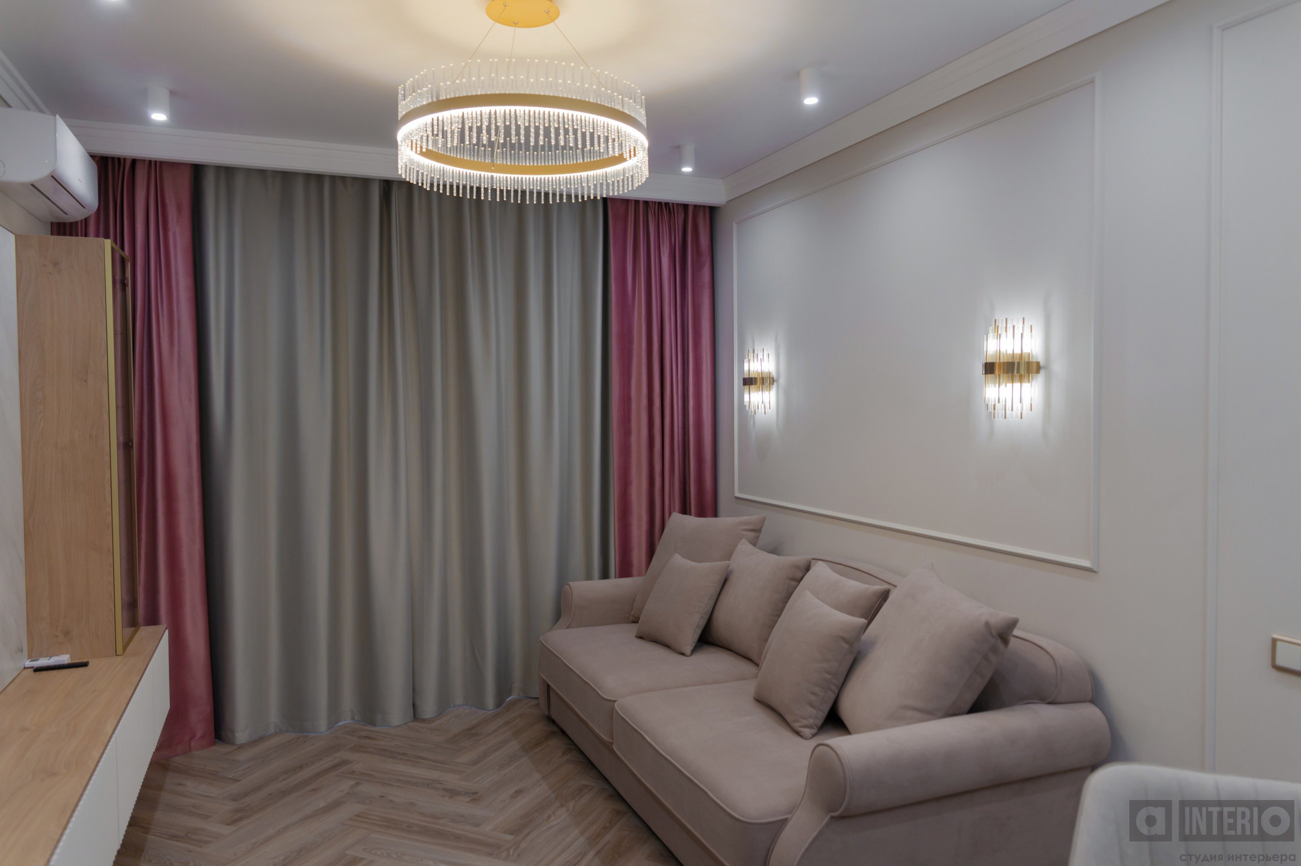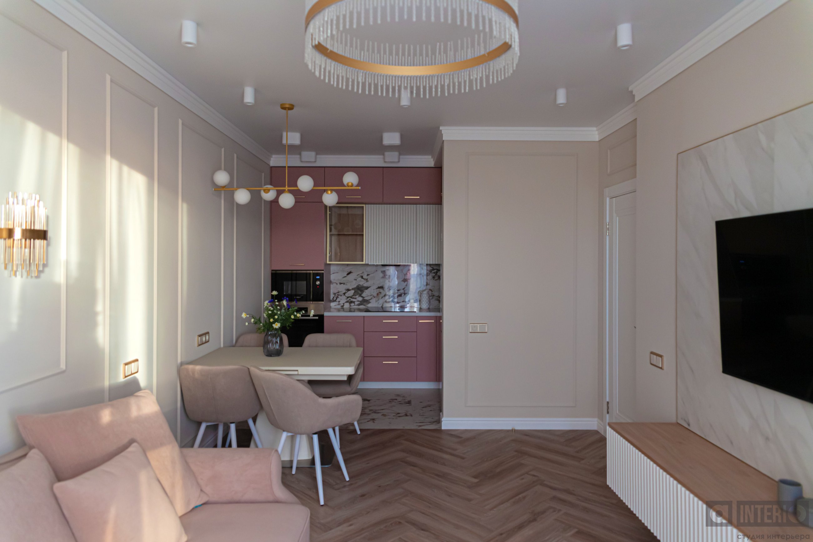 Дизайн квартиры показан как в эскизах, так и на фото - реализации.