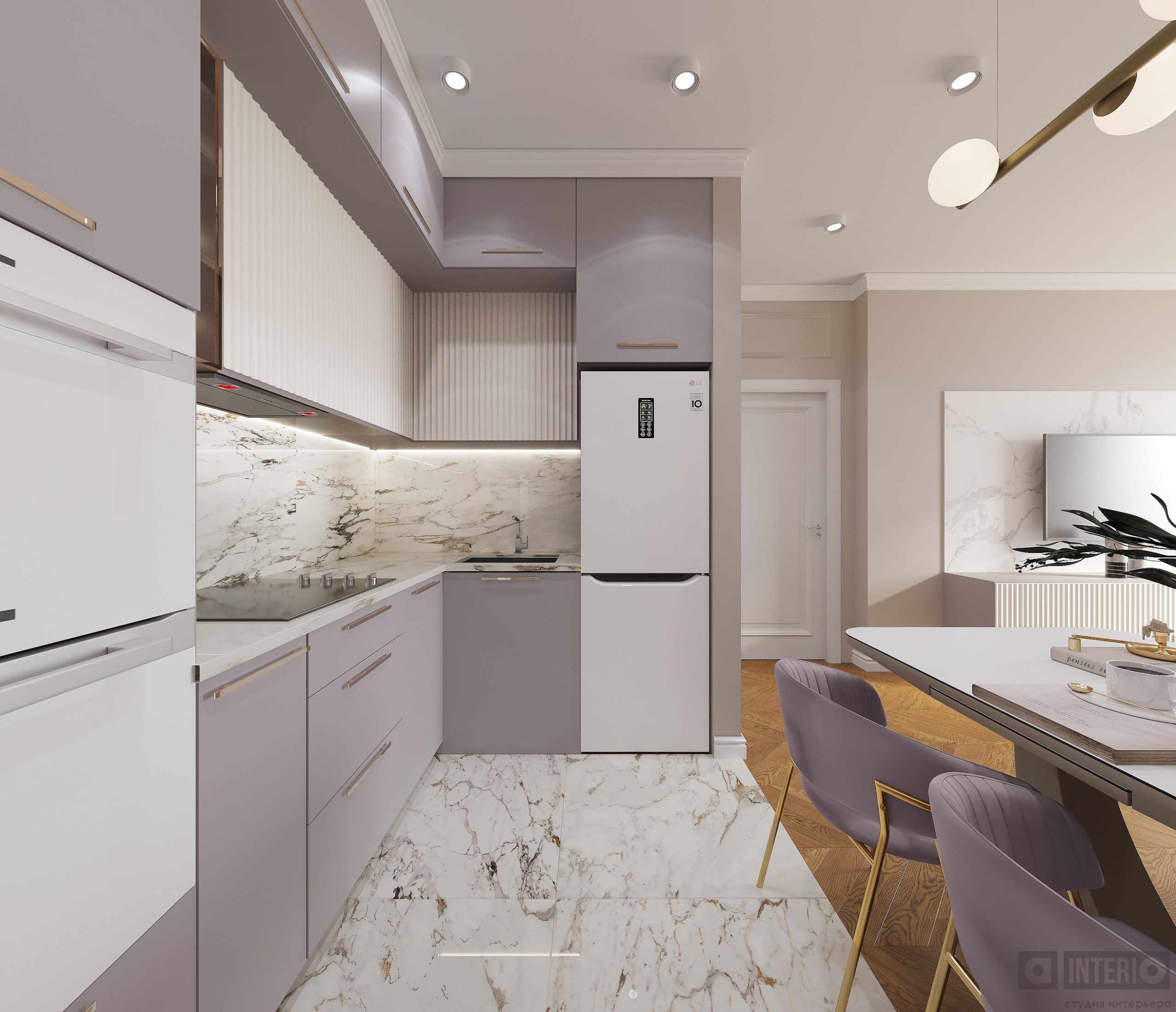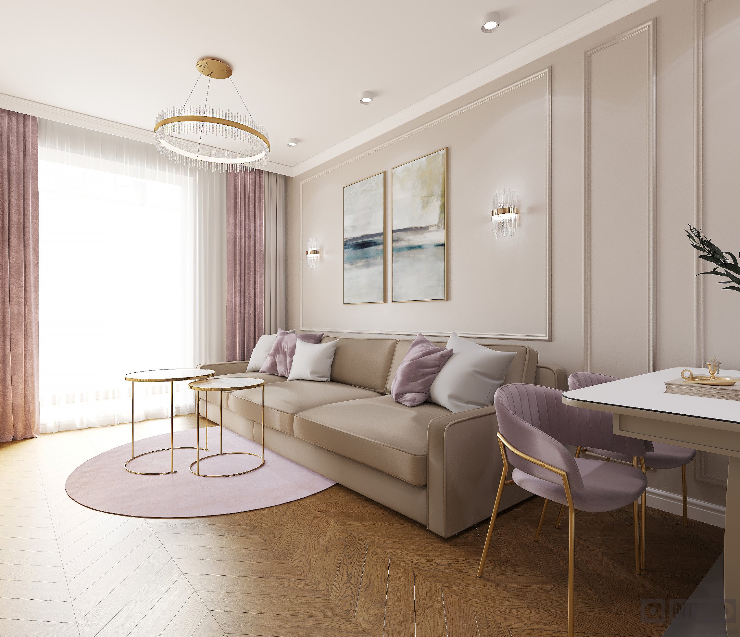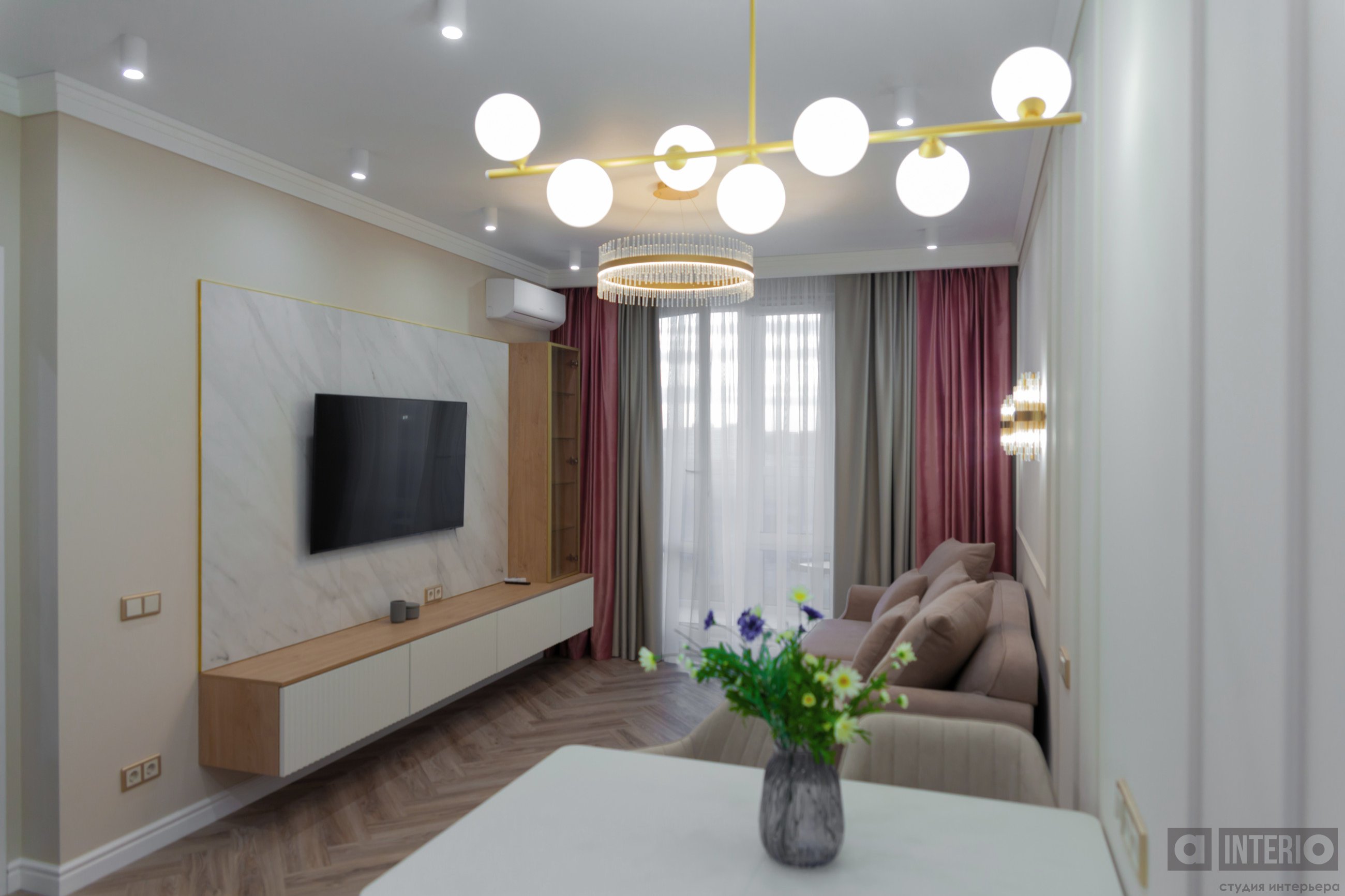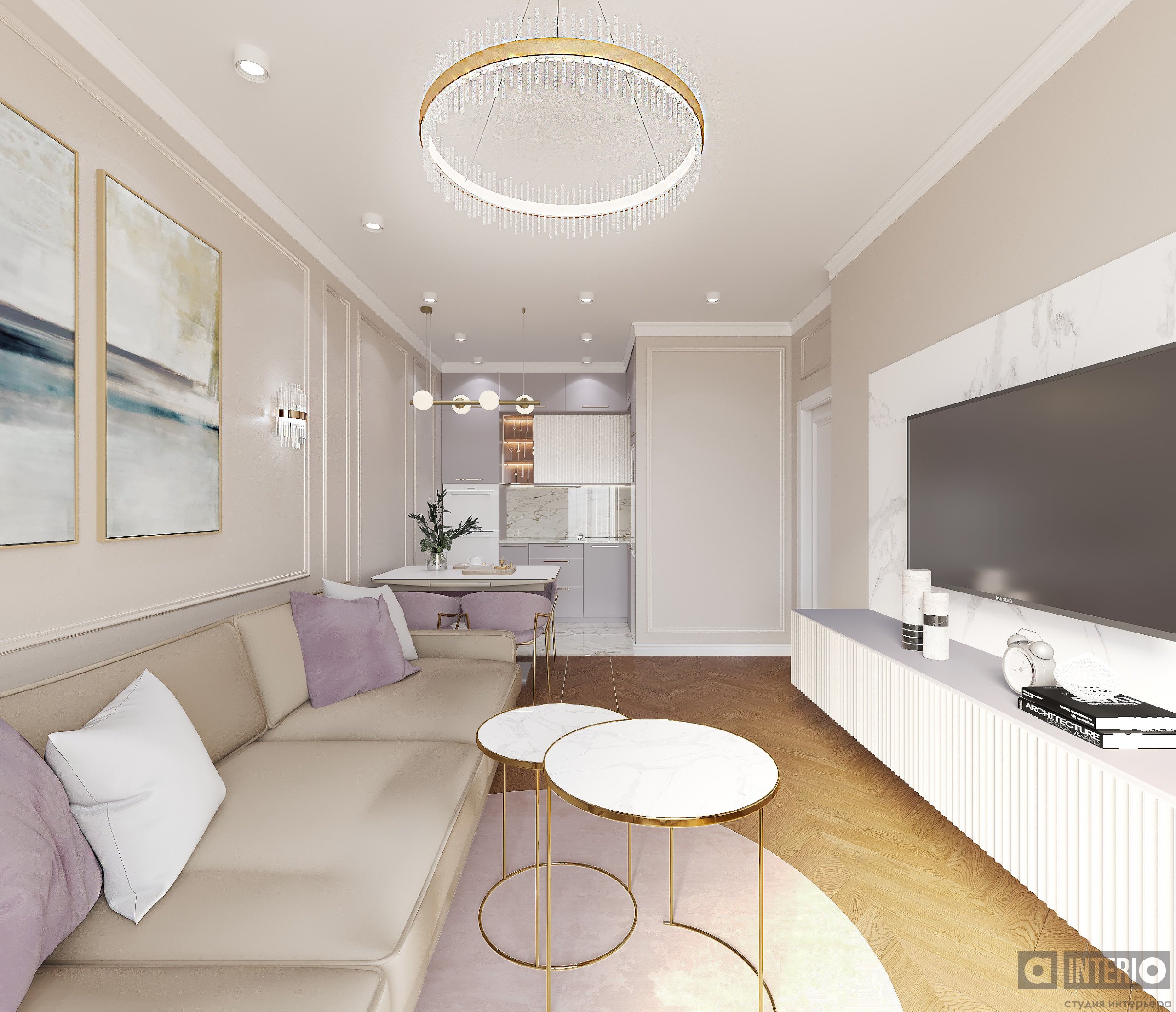 Дизайн квартиры показан как в эскизах, так и на фото - реализации.