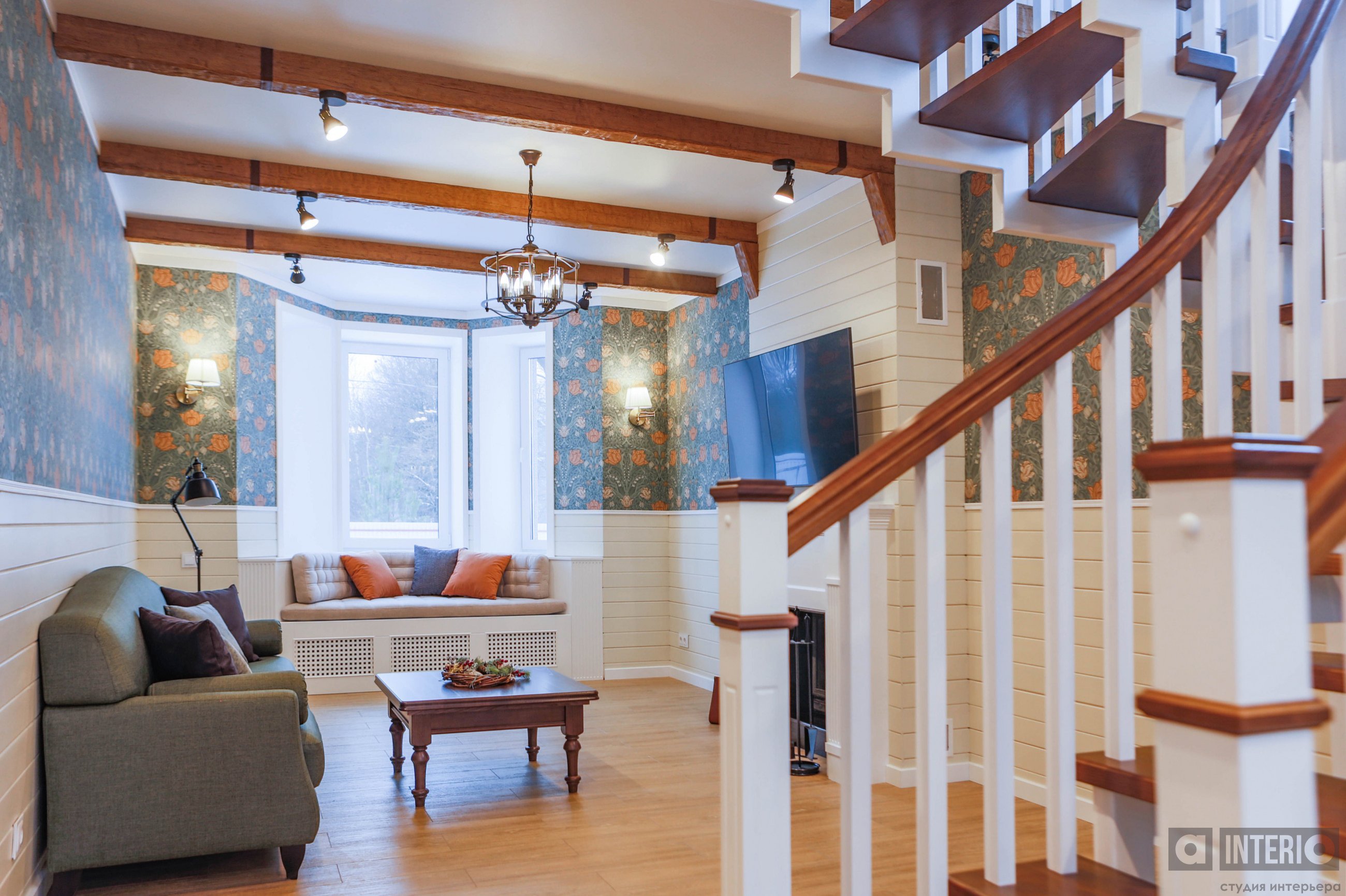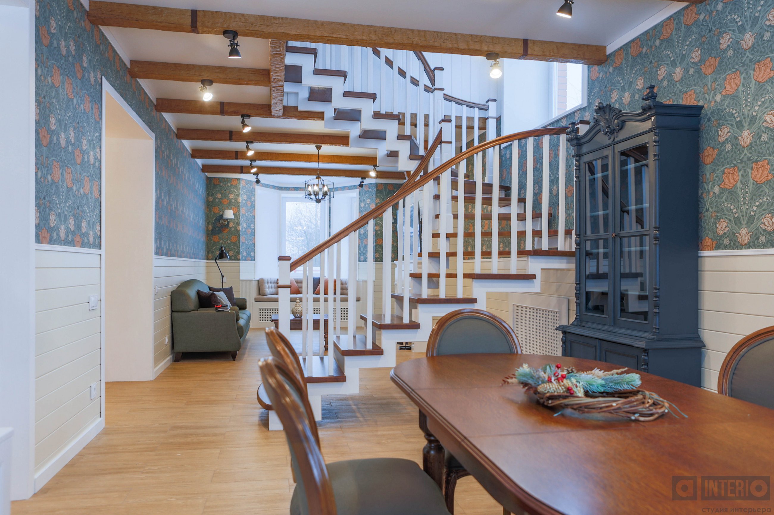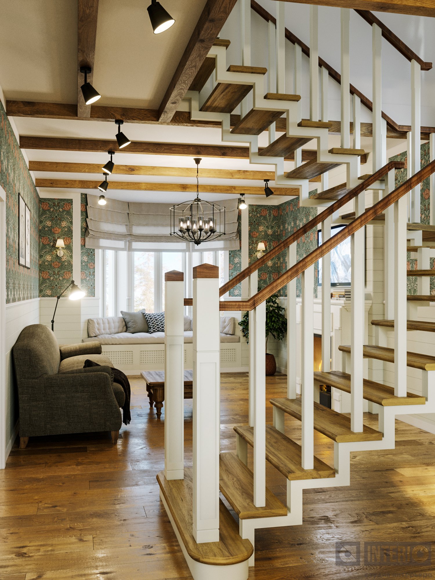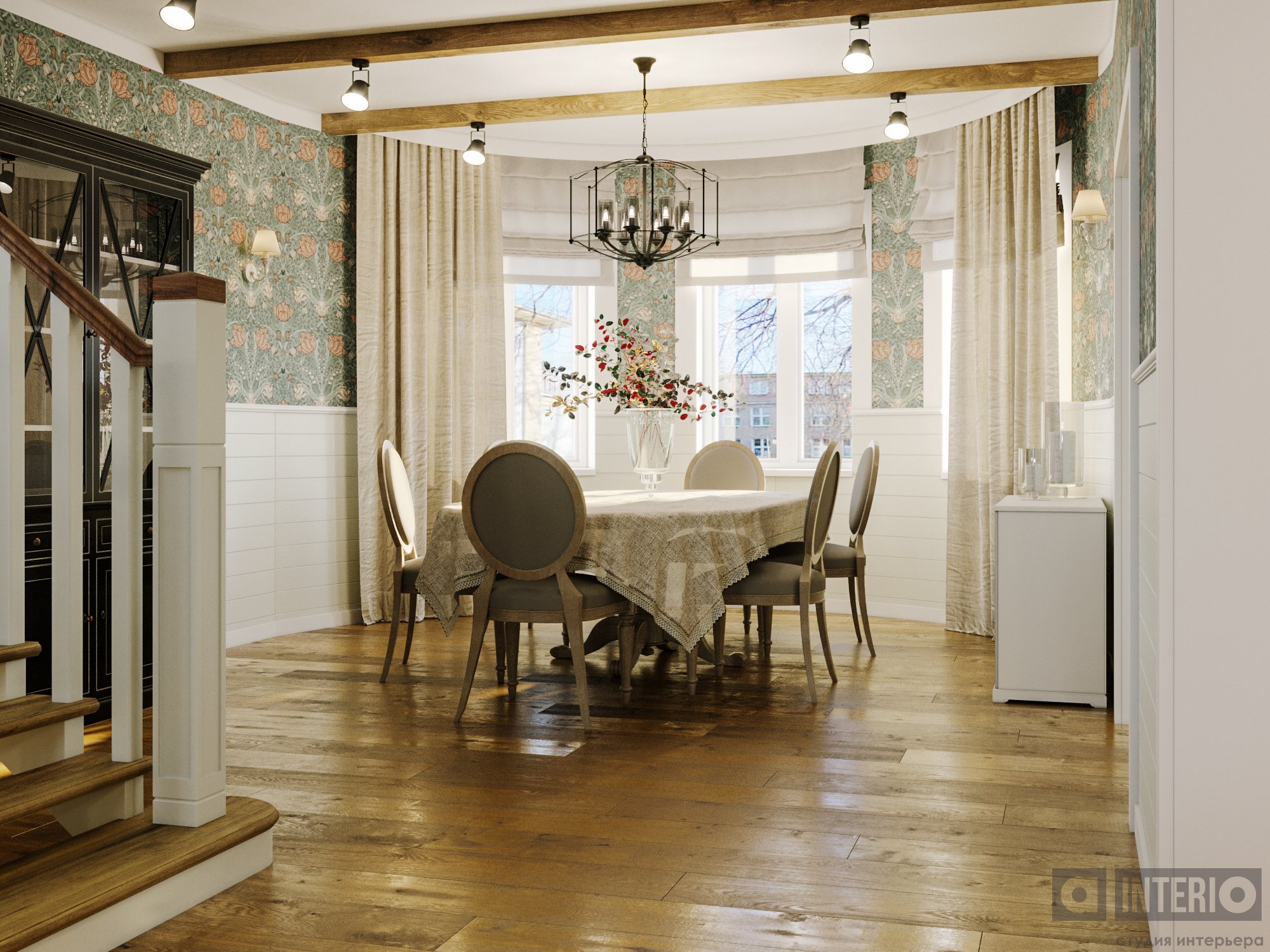 Т.к. дом этот вполне капитальное строение, но не является единственным жильем хозяев, а загородным домом для отдыха и альтернативой городской квартире. Решением его стилистики стало - не универсальное пространство, а именно ощущение загородного традиционного дома, теплого и уютного, непохожего на многие. Дом - сказка, рождественский уют, цветущий кантри.. вот те эпитеты, которые приходят на ум, глядя на этот интерьер. И действительно, все тут распологает к побегу от городской суеты, к ощущению тихого и уютного семейного счастья вокруг трескучего классического настоящего камина...