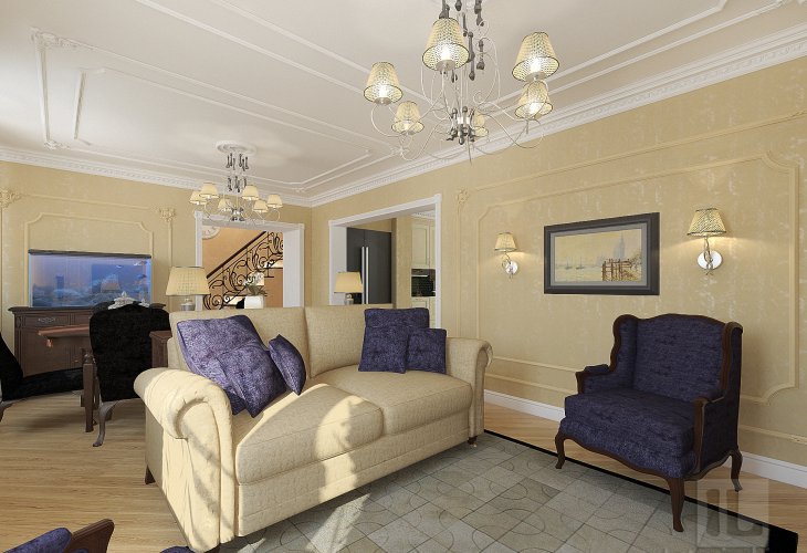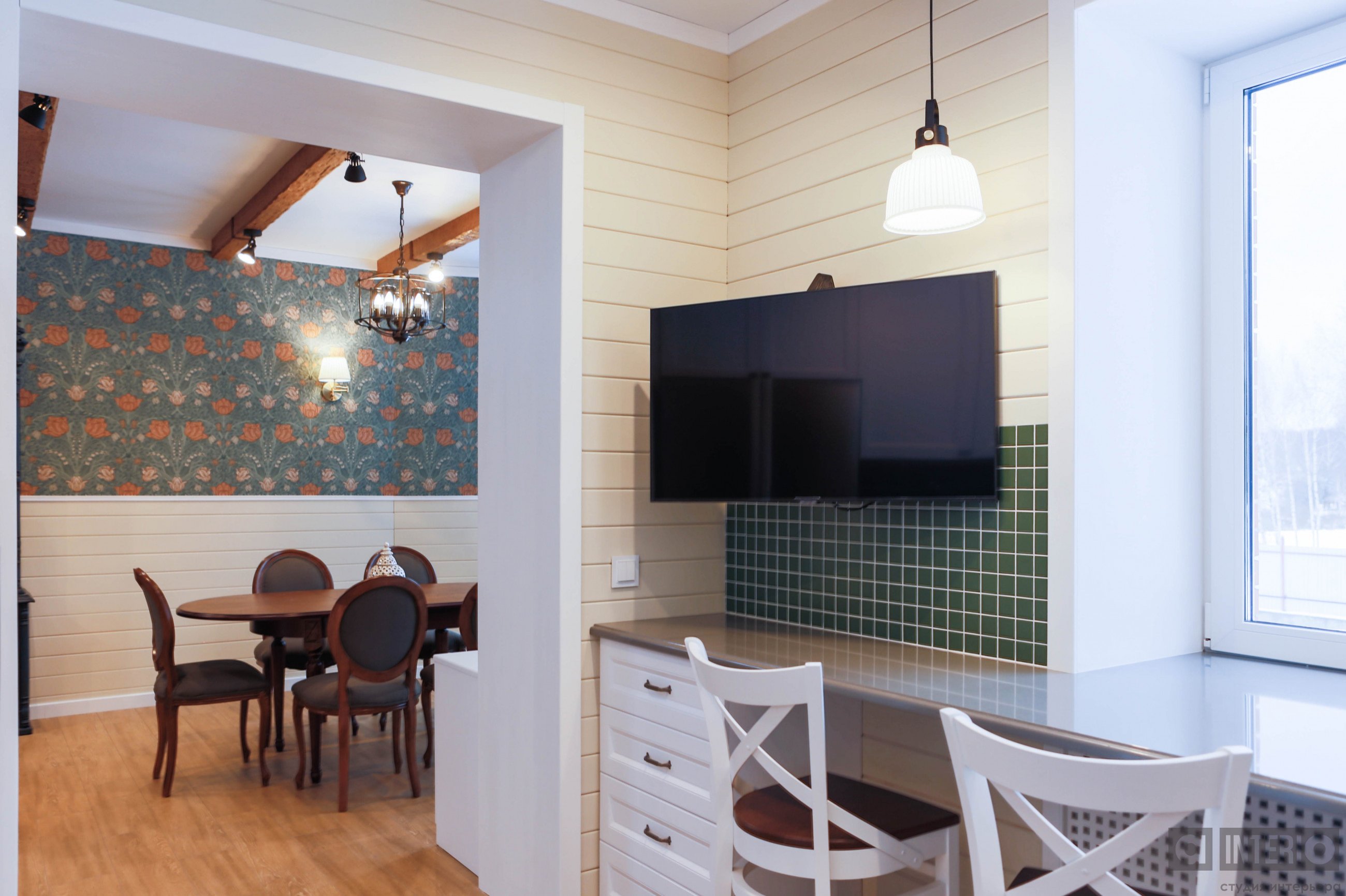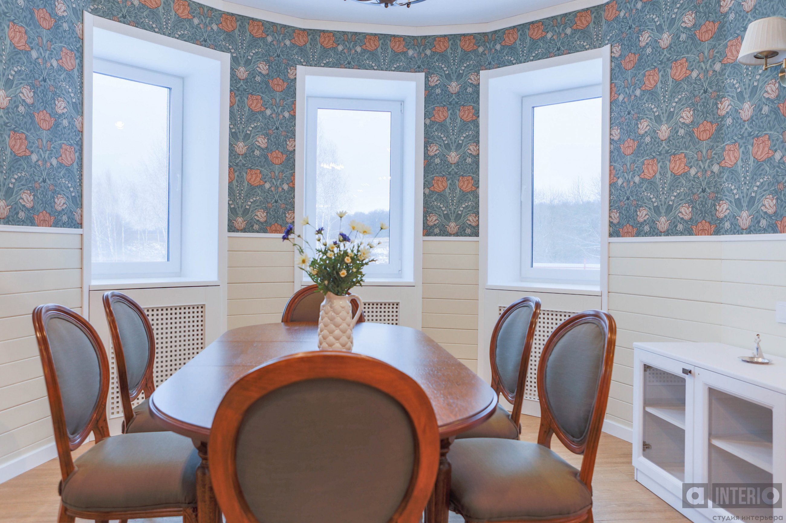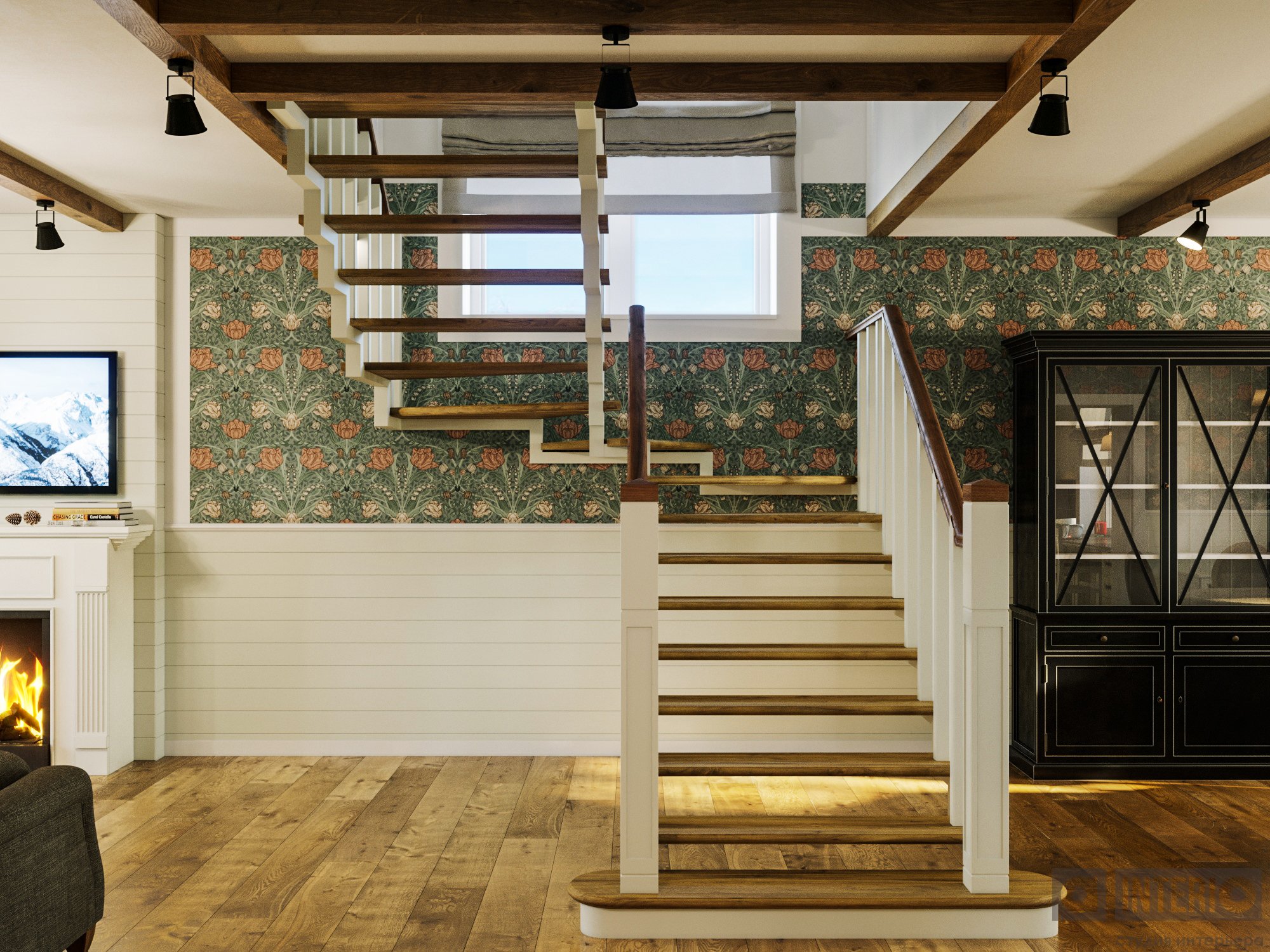 Т.к. дом этот вполне капитальное строение, но не является единственным жильем хозяев, а загородным домом для отдыха и альтернативой городской квартире. Решением его стилистики стало - не универсальное пространство, а именно ощущение загородного традиционного дома, теплого и уютного, непохожего на многие. Дом - сказка, рождественский уют, цветущий кантри.. вот те эпитеты, которые приходят на ум, глядя на этот интерьер. И действительно, все тут распологает к побегу от городской суеты, к ощущению тихого и уютного семейного счастья вокруг трескучего классического настоящего камина...