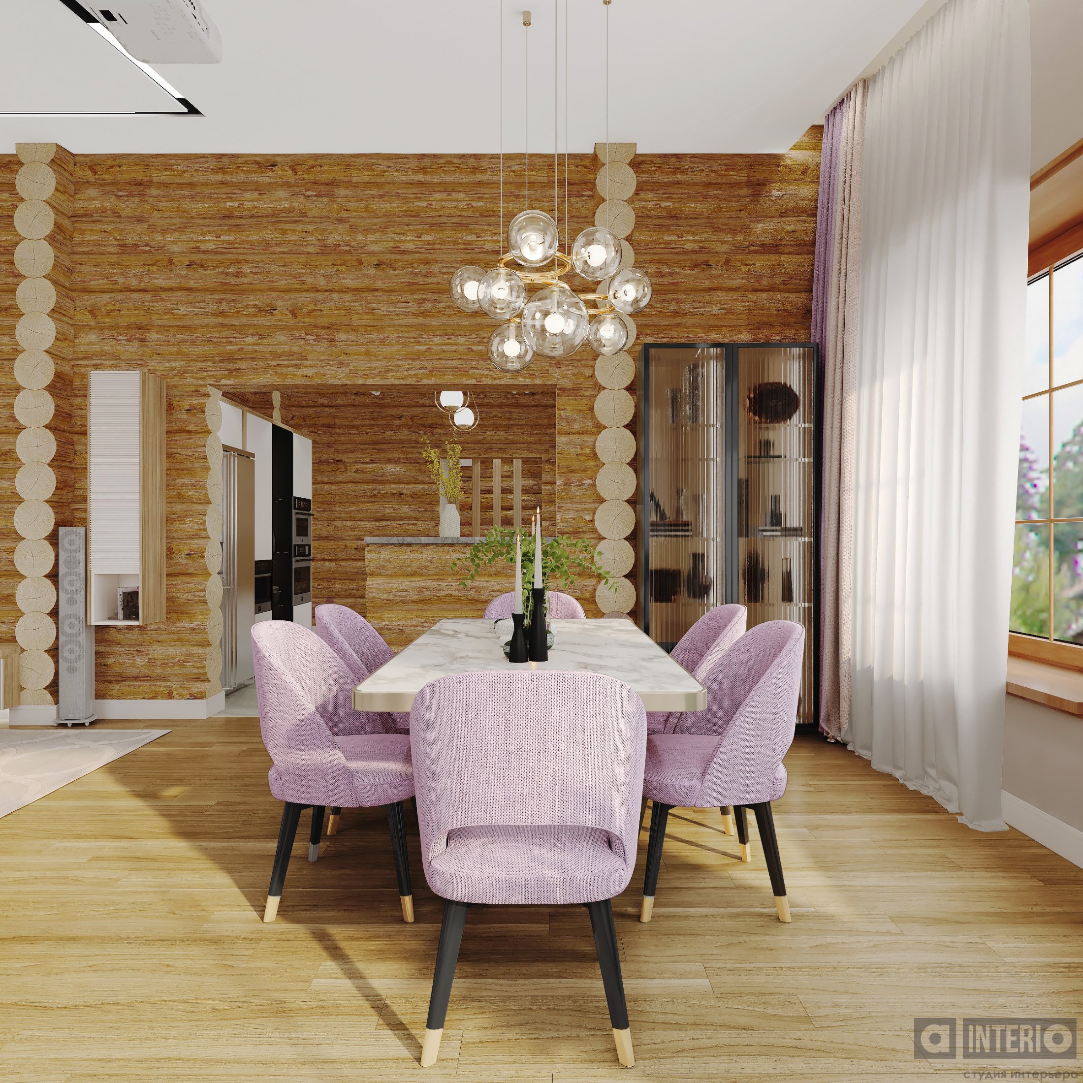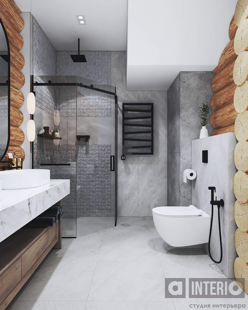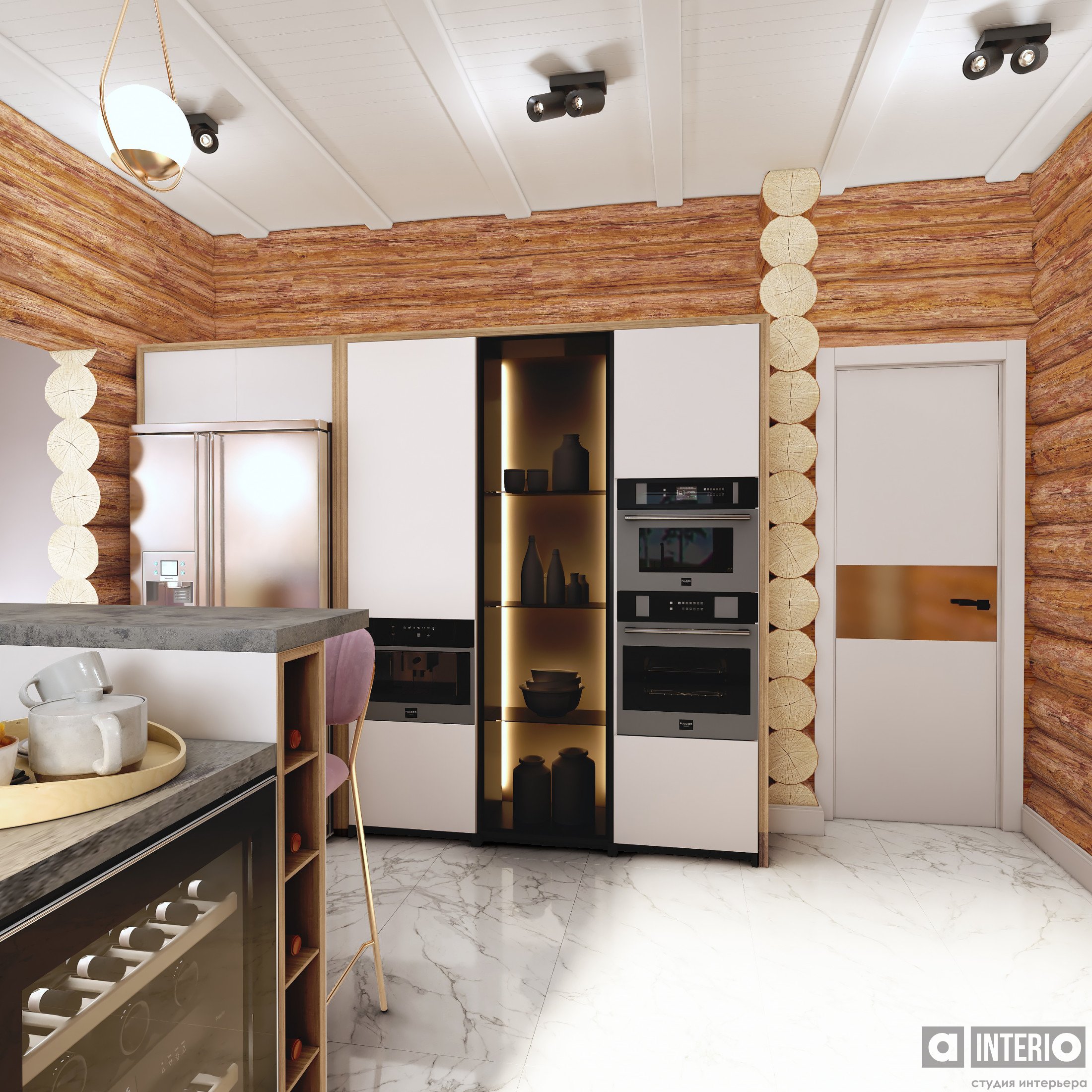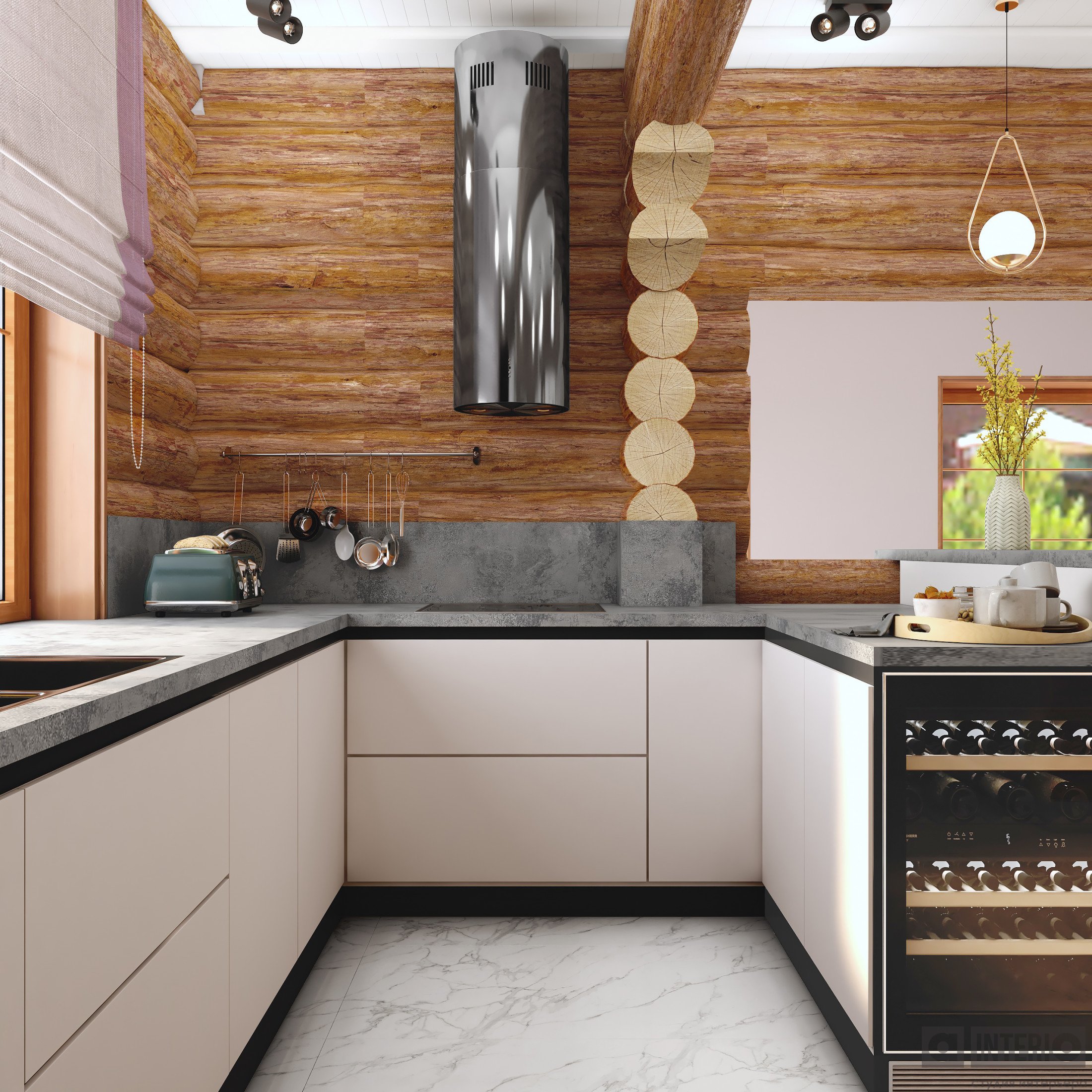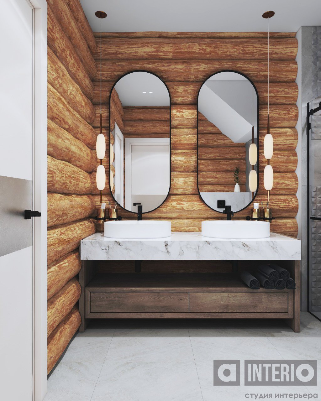 Проект интересен не только тем, что он эргономичен и изящен, но и тем, что тут соседствуют 2 материала несущих стен - кирпич и цилиндровый сруб!Постарались сделать пространство дома легким, современным и уютным!
