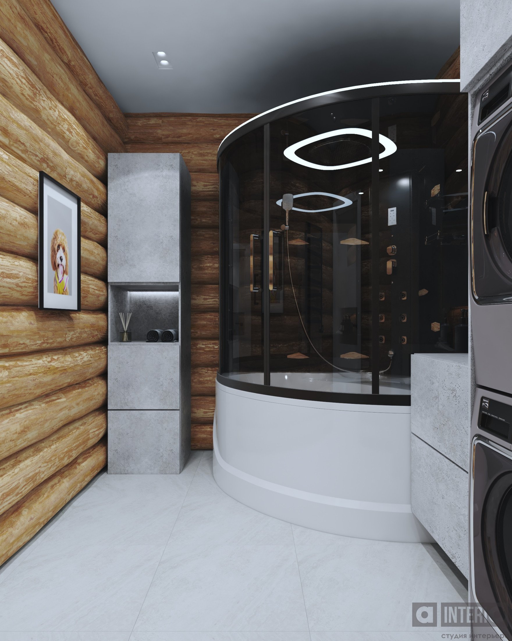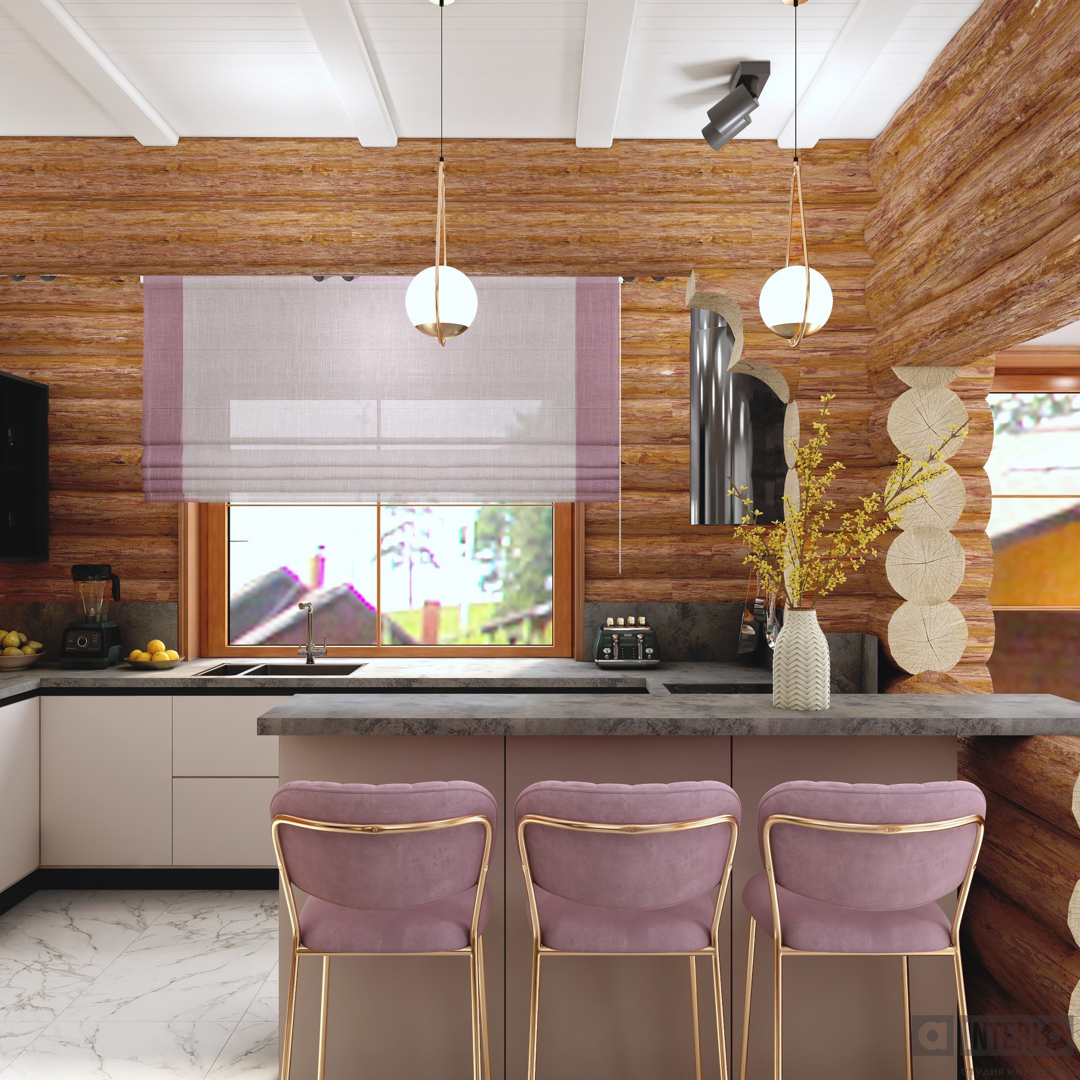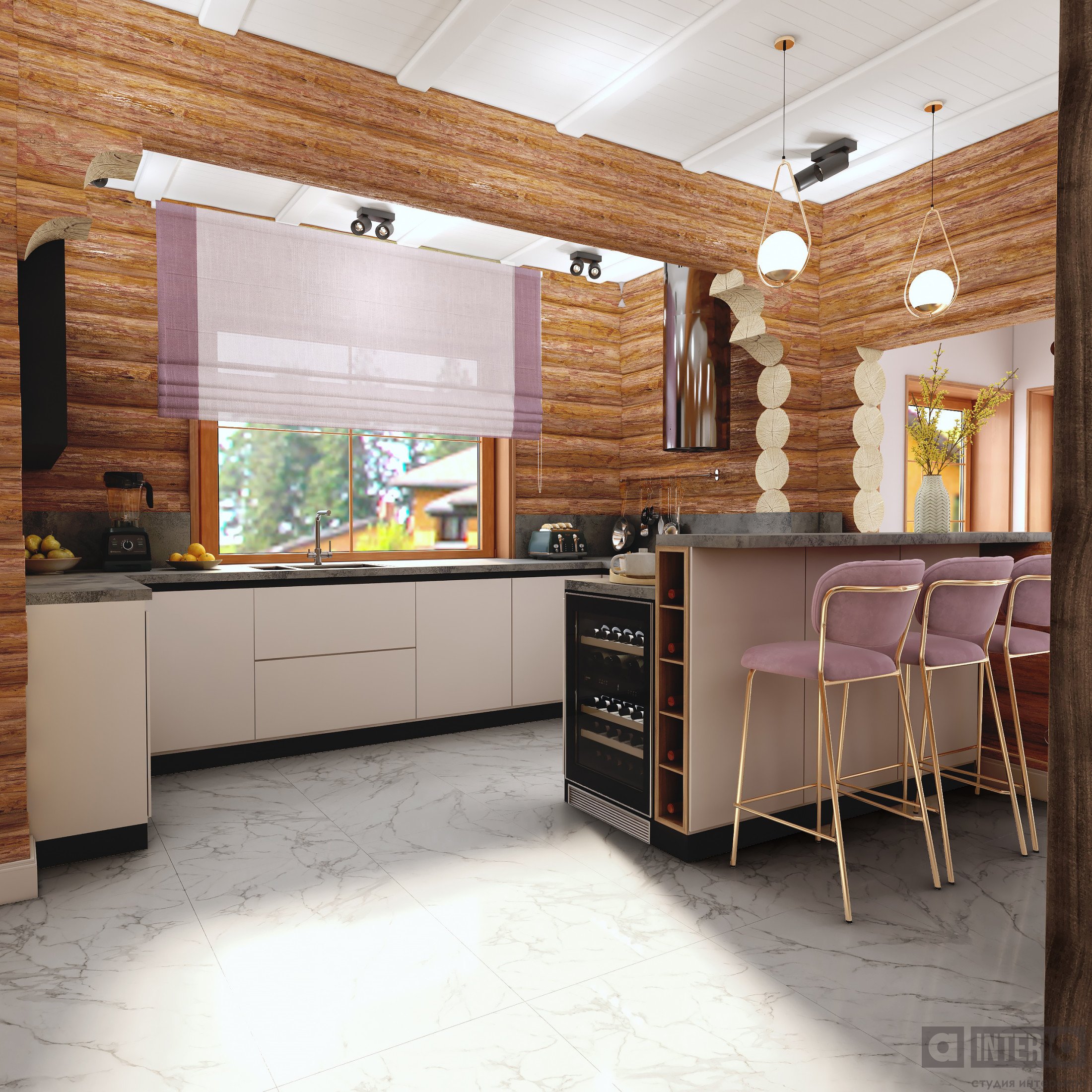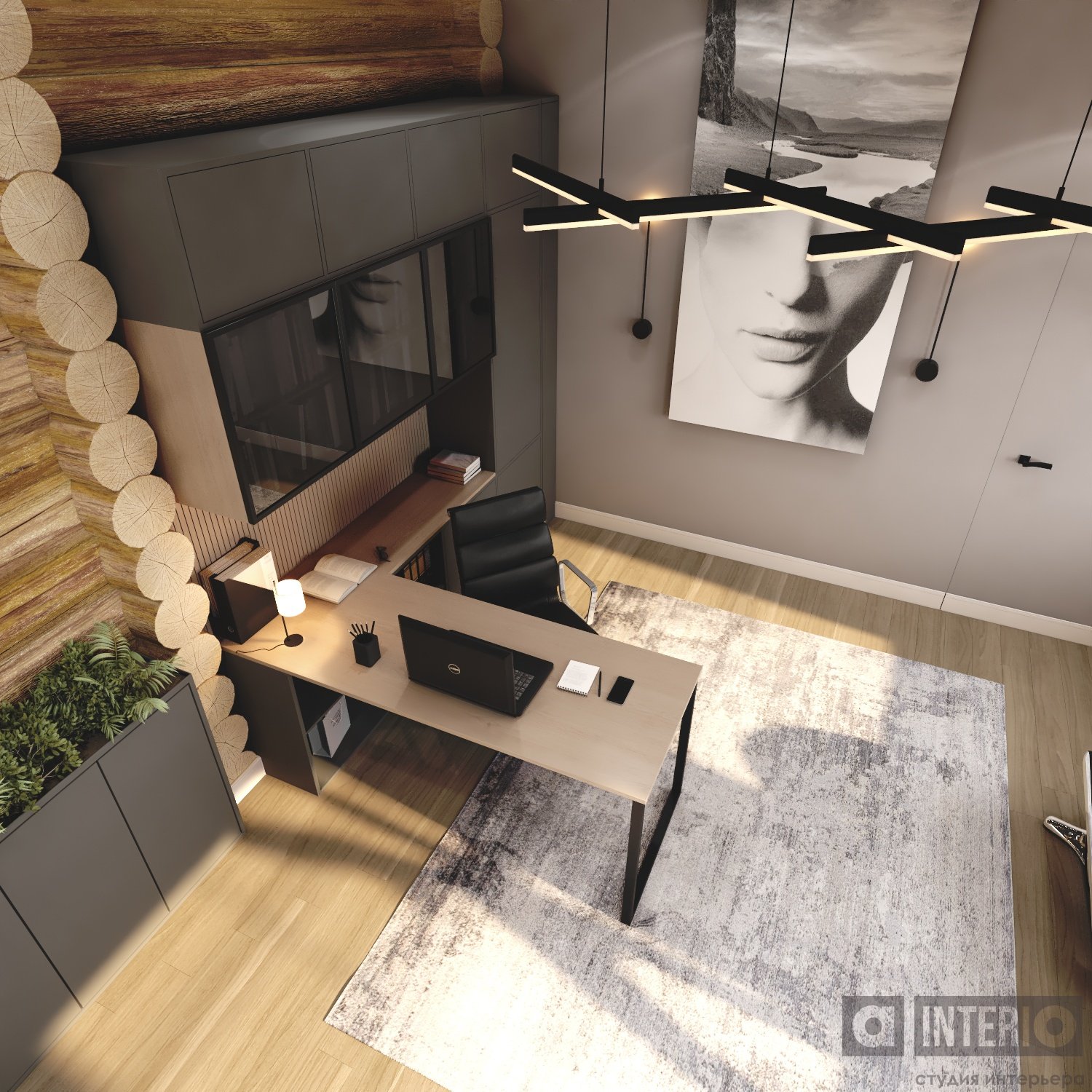 Проект интересен не только тем, что он эргономичен и изящен, но и тем, что тут соседствуют 2 материала несущих стен - кирпич и цилиндровый сруб!Постарались сделать пространство дома легким, современным и уютным!