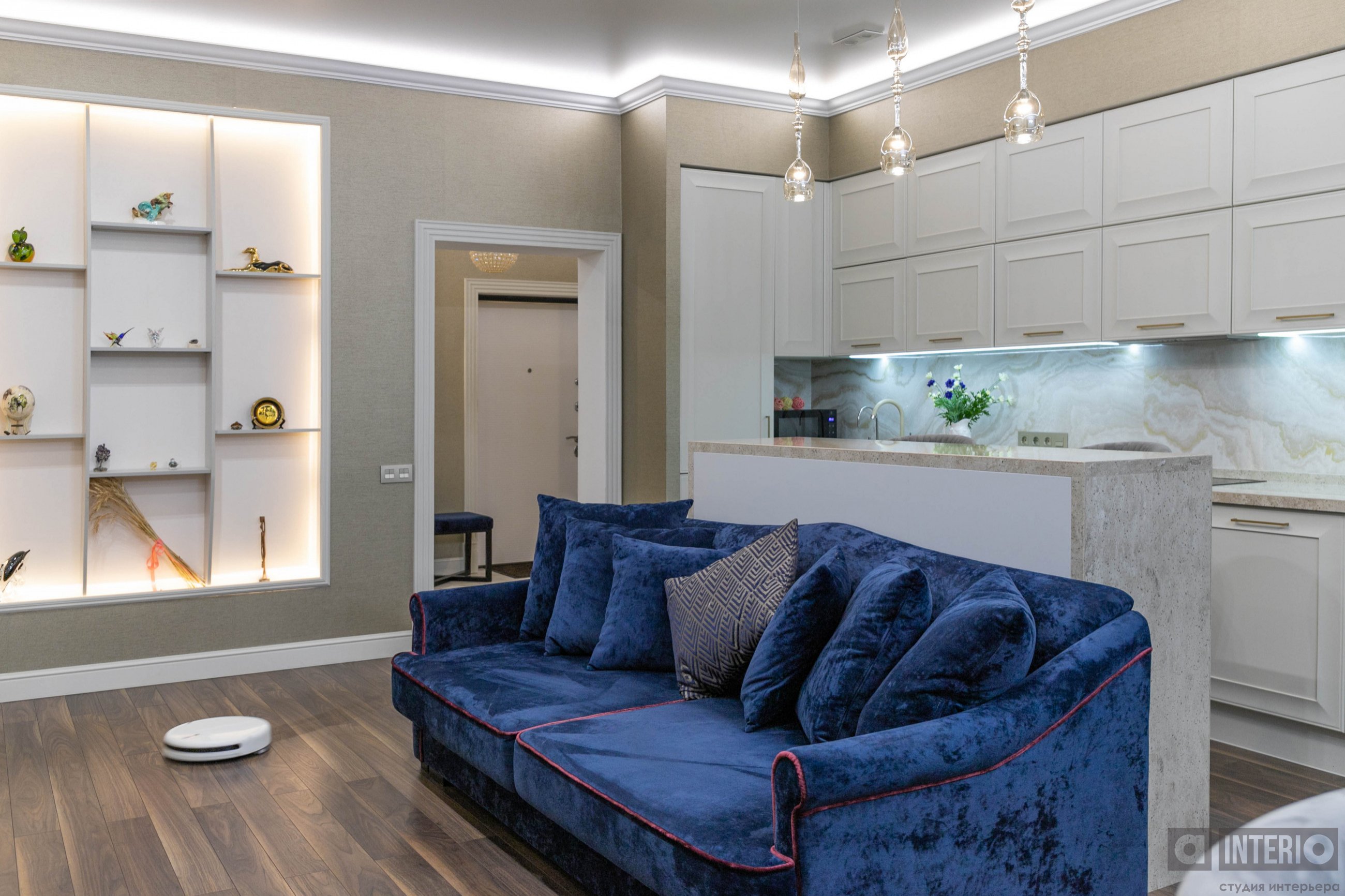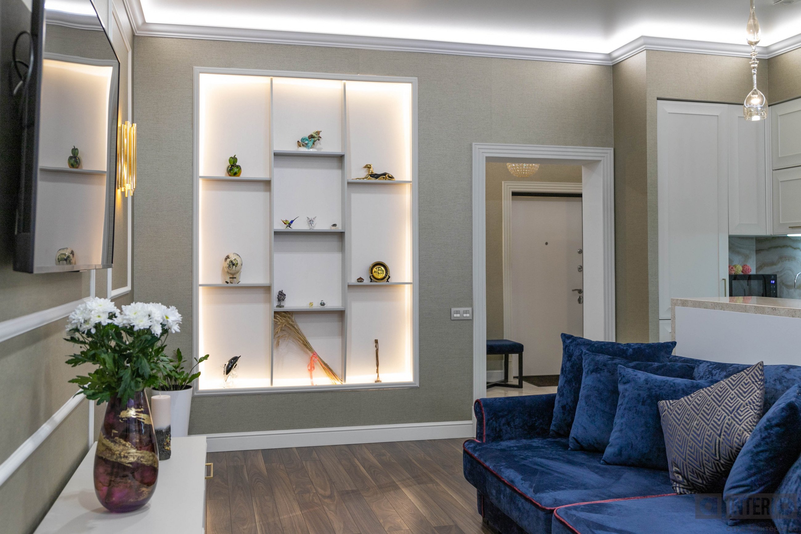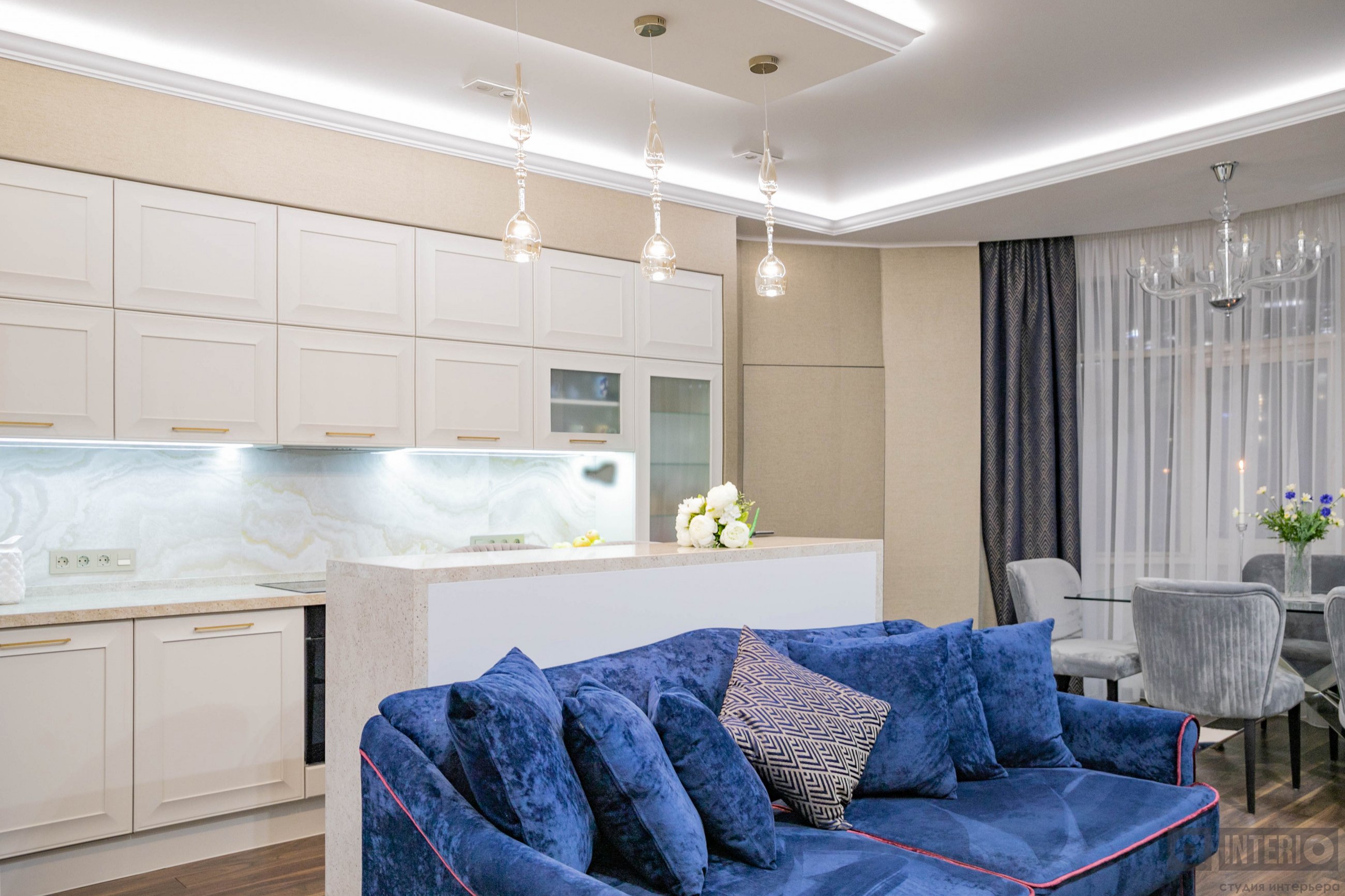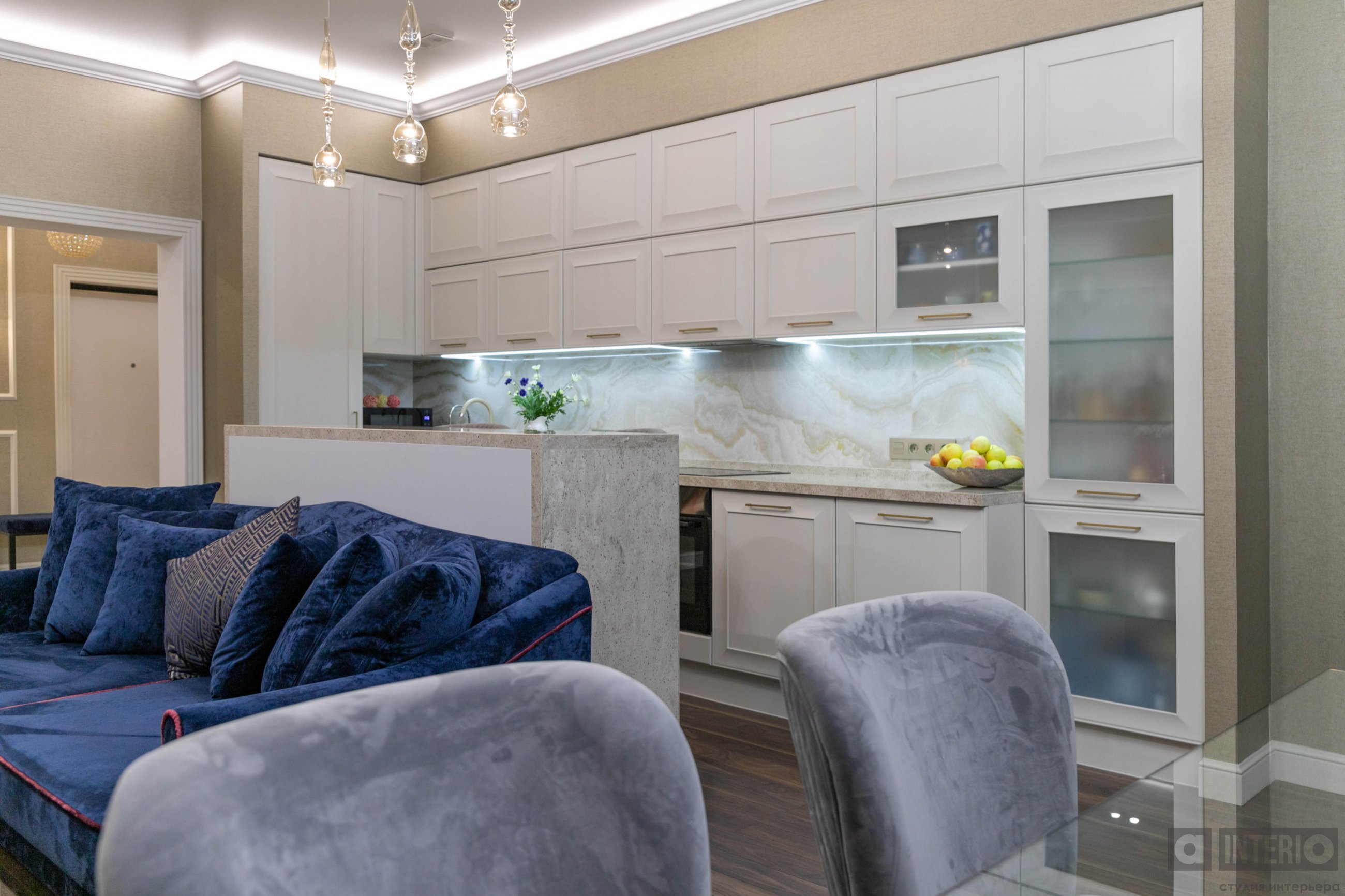 Дизайн квартиры показан как в эскизах, так и на фото - реализации.