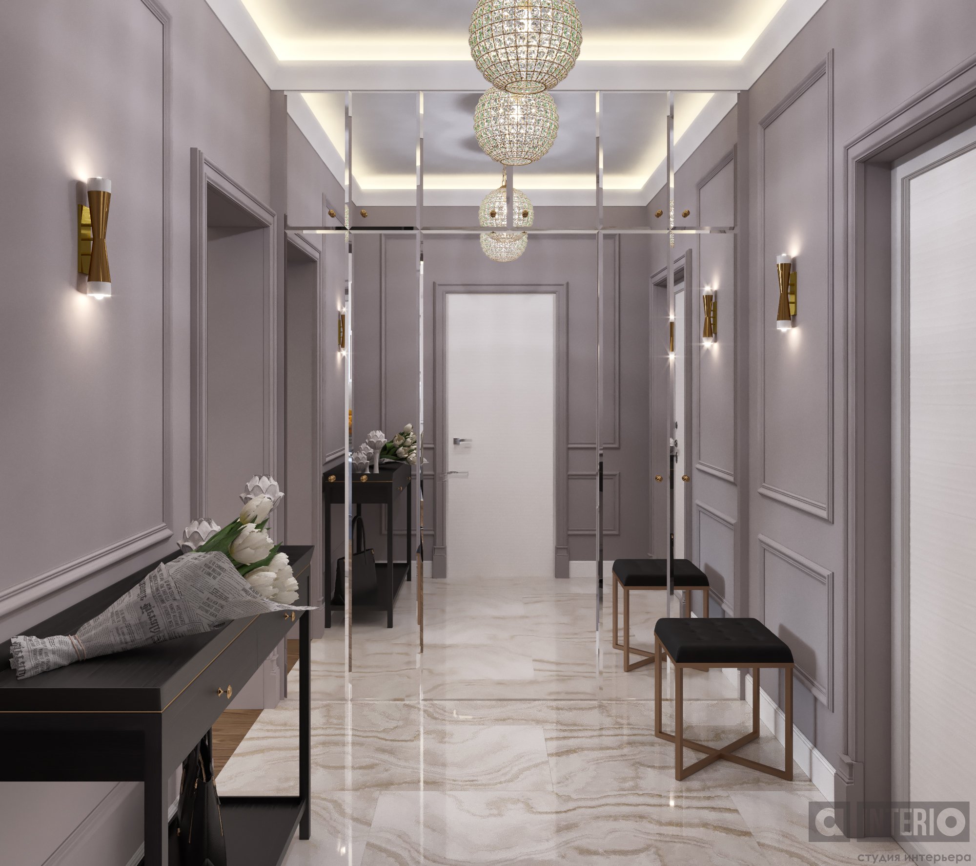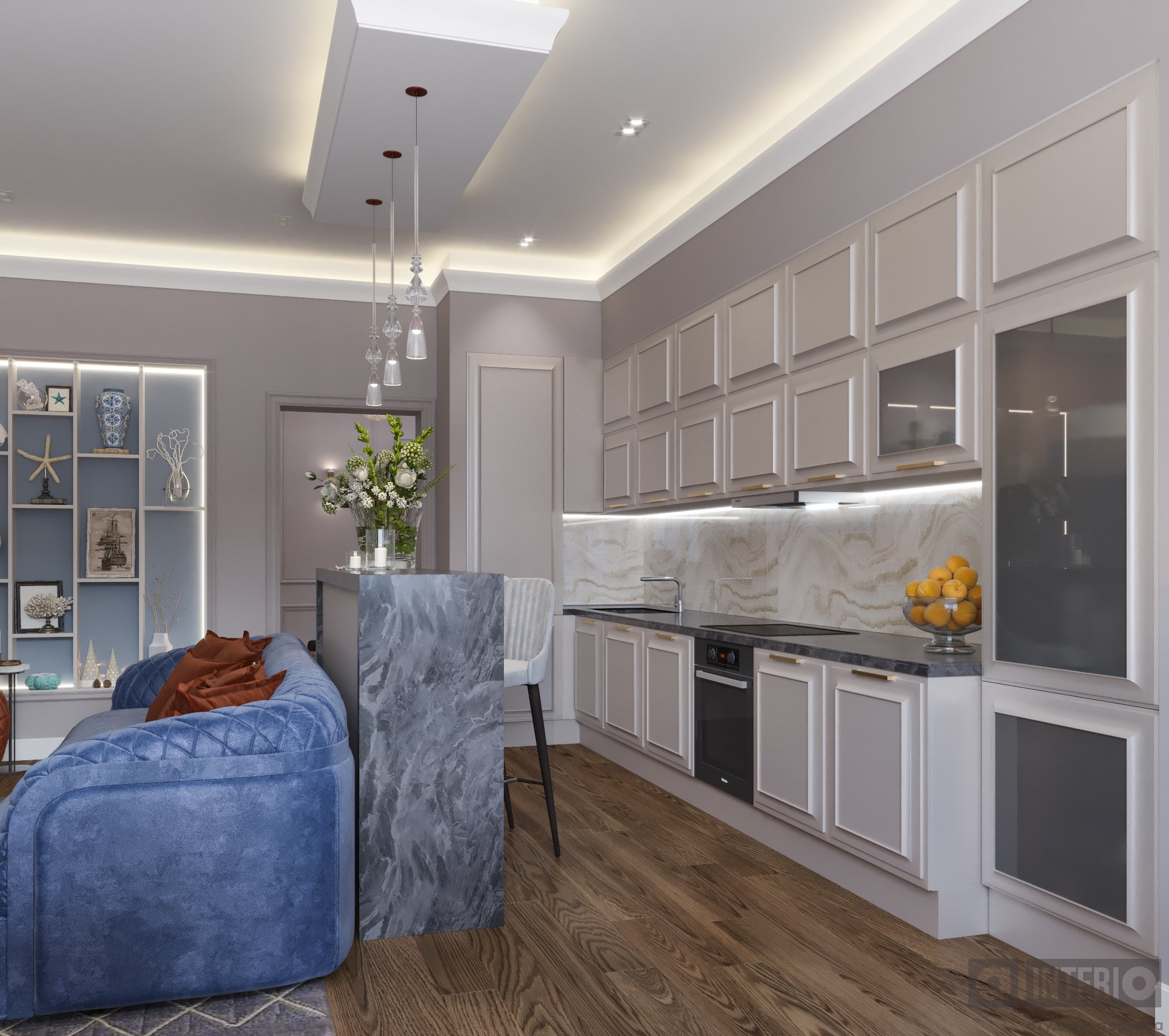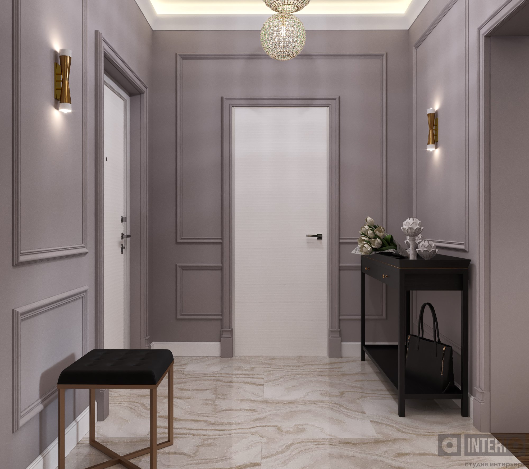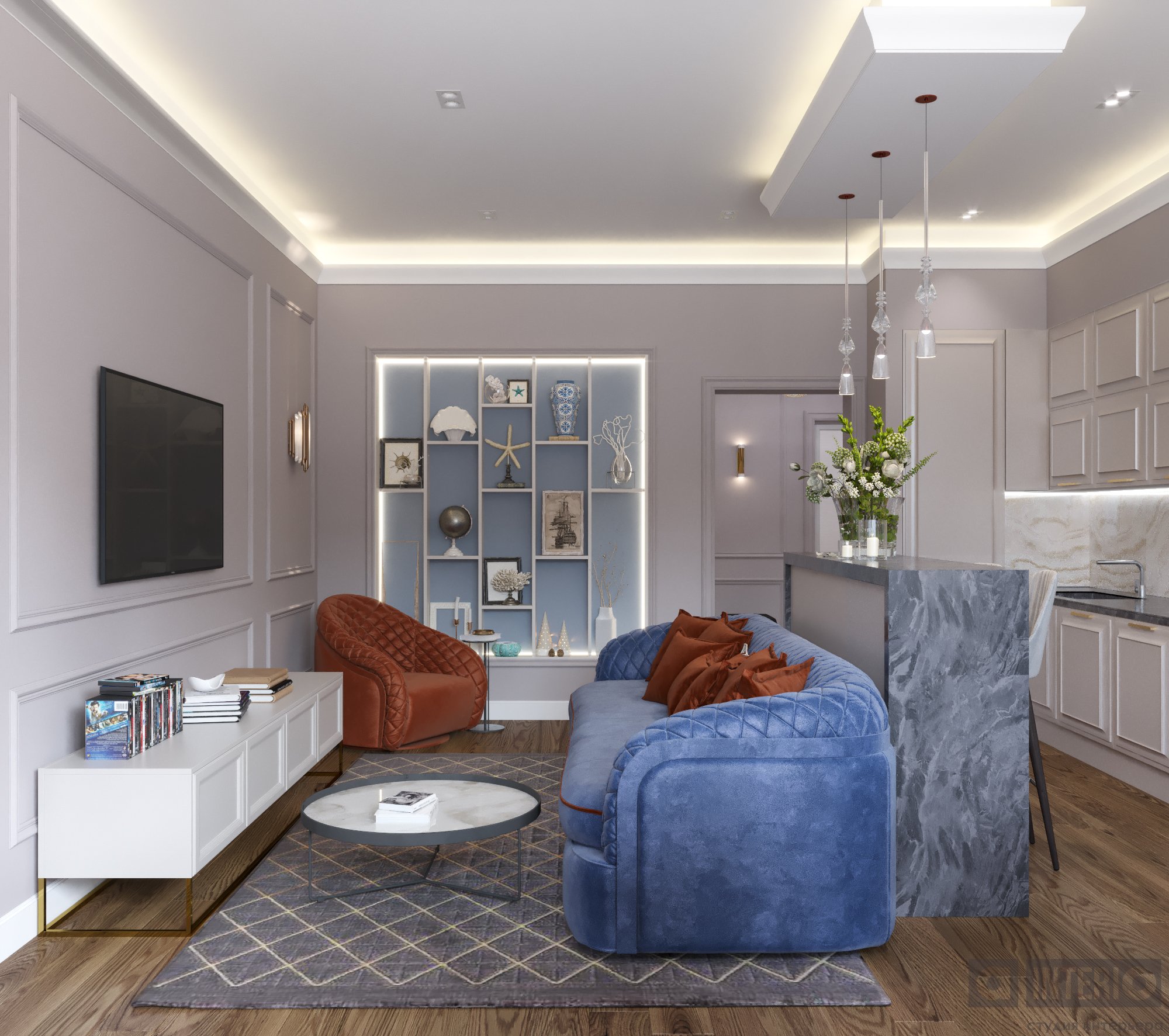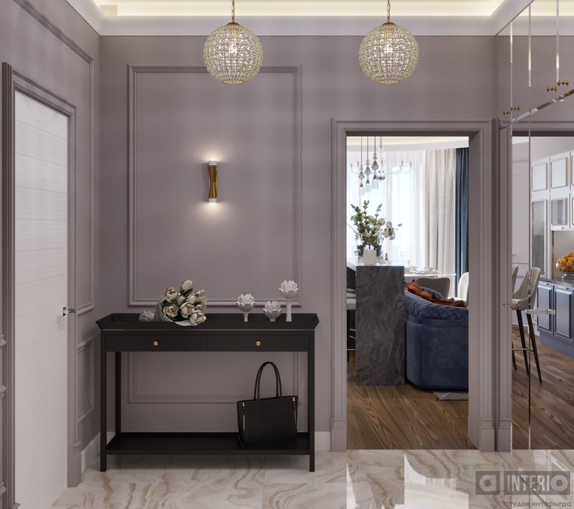Дизайн квартиры показан как в эскизах, так и на фото - реализации.