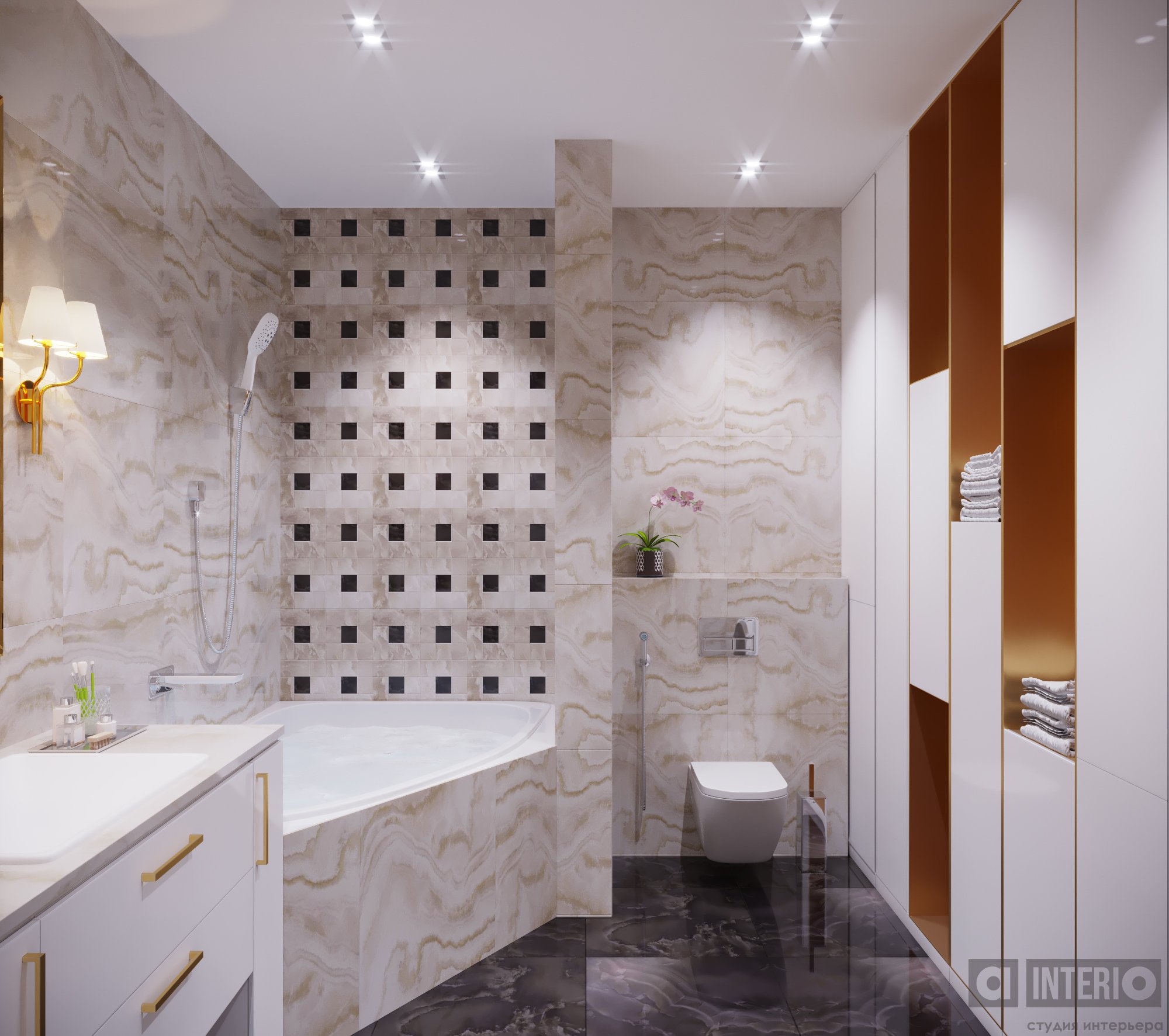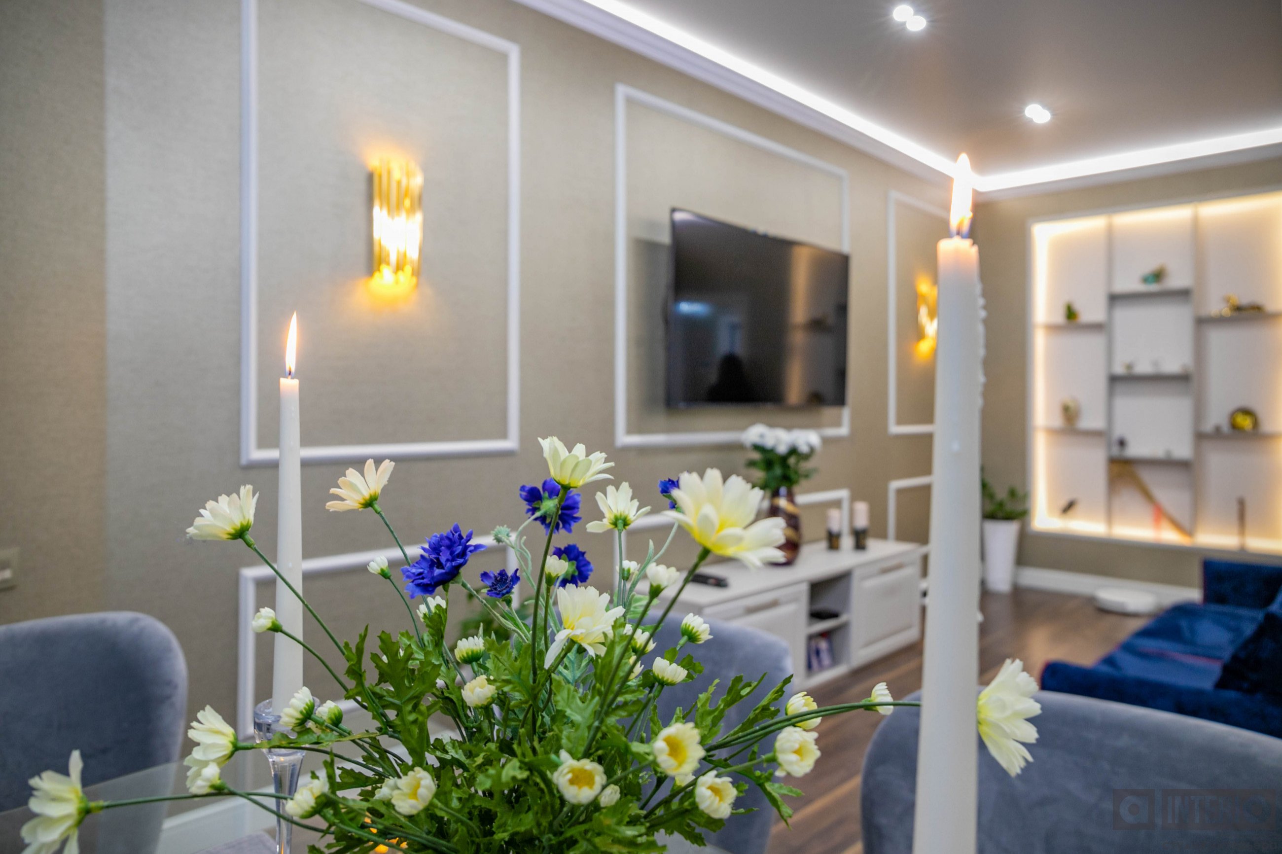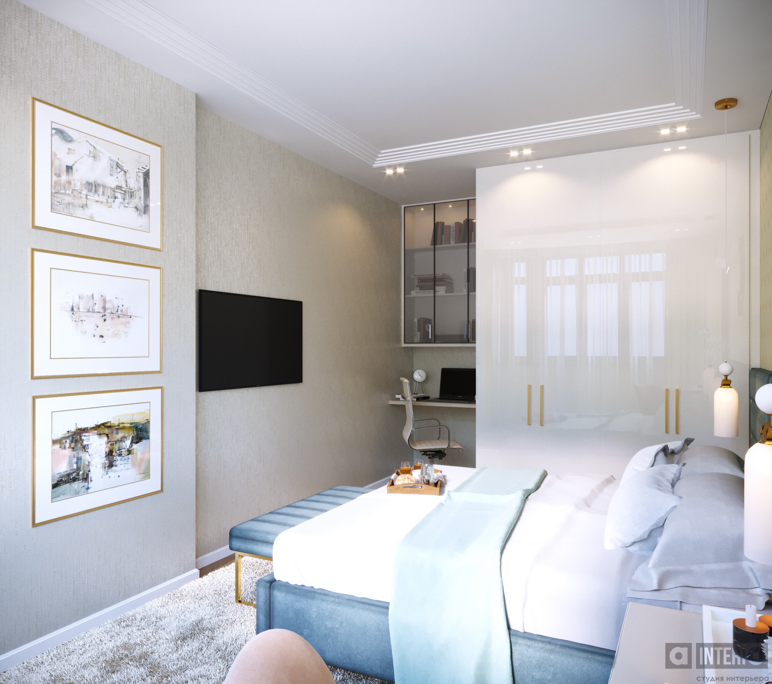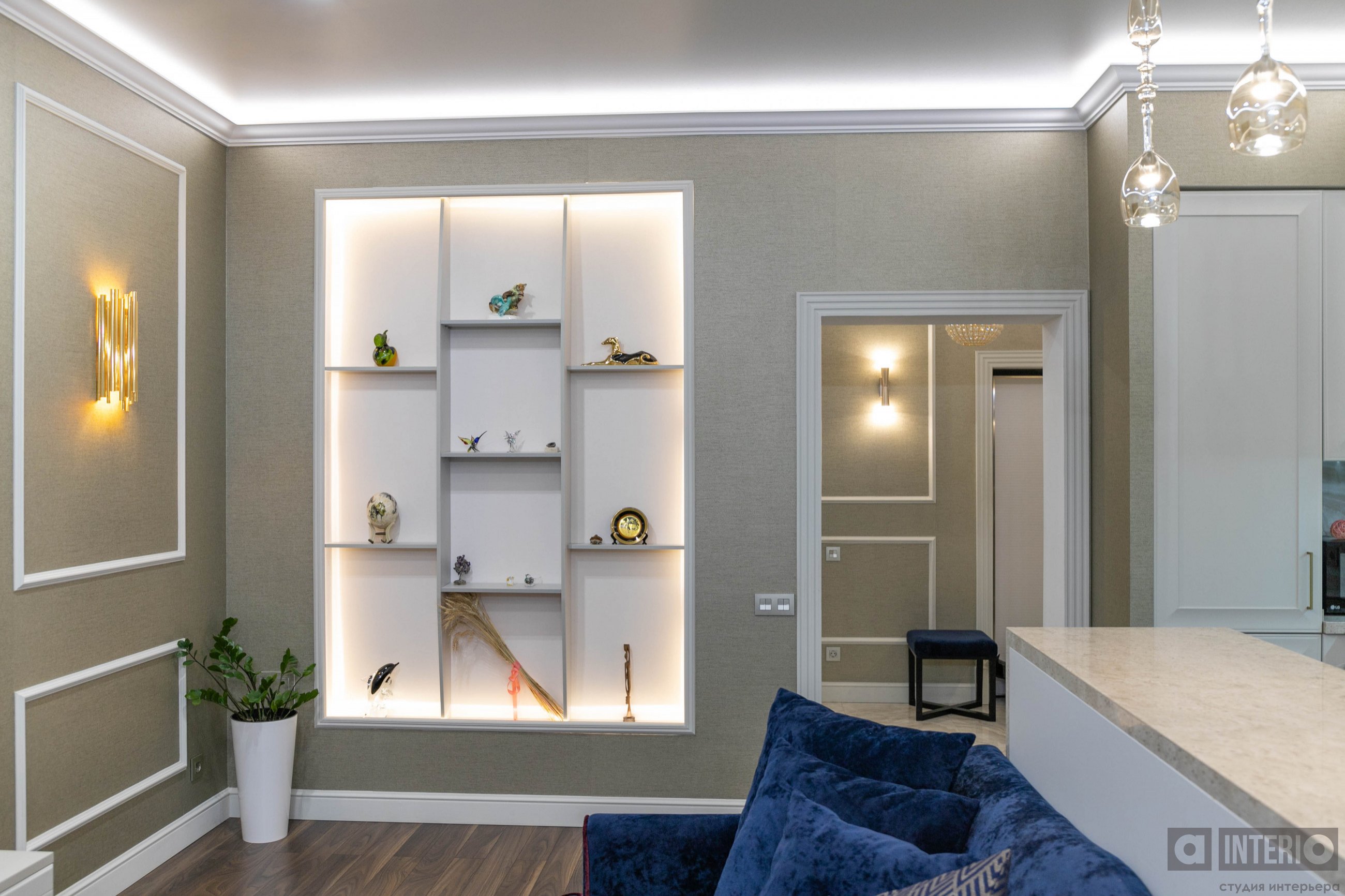 Дизайн квартиры показан как в эскизах, так и на фото - реализации.