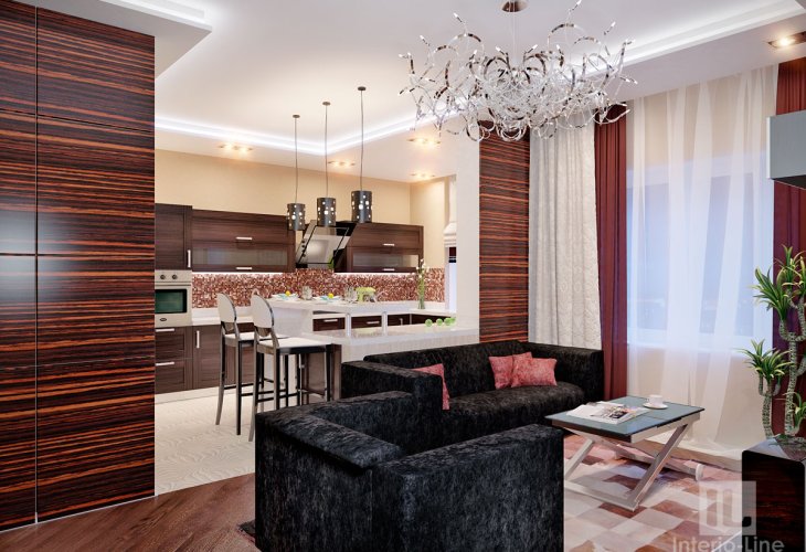 Дизайн этой квартиры был создан для прекрасной дамы, бизнес-леди. Планировка квартиры представляла собой однокомнатную с кухней, но площадь ее совсем не маленькая - 70 м.2.