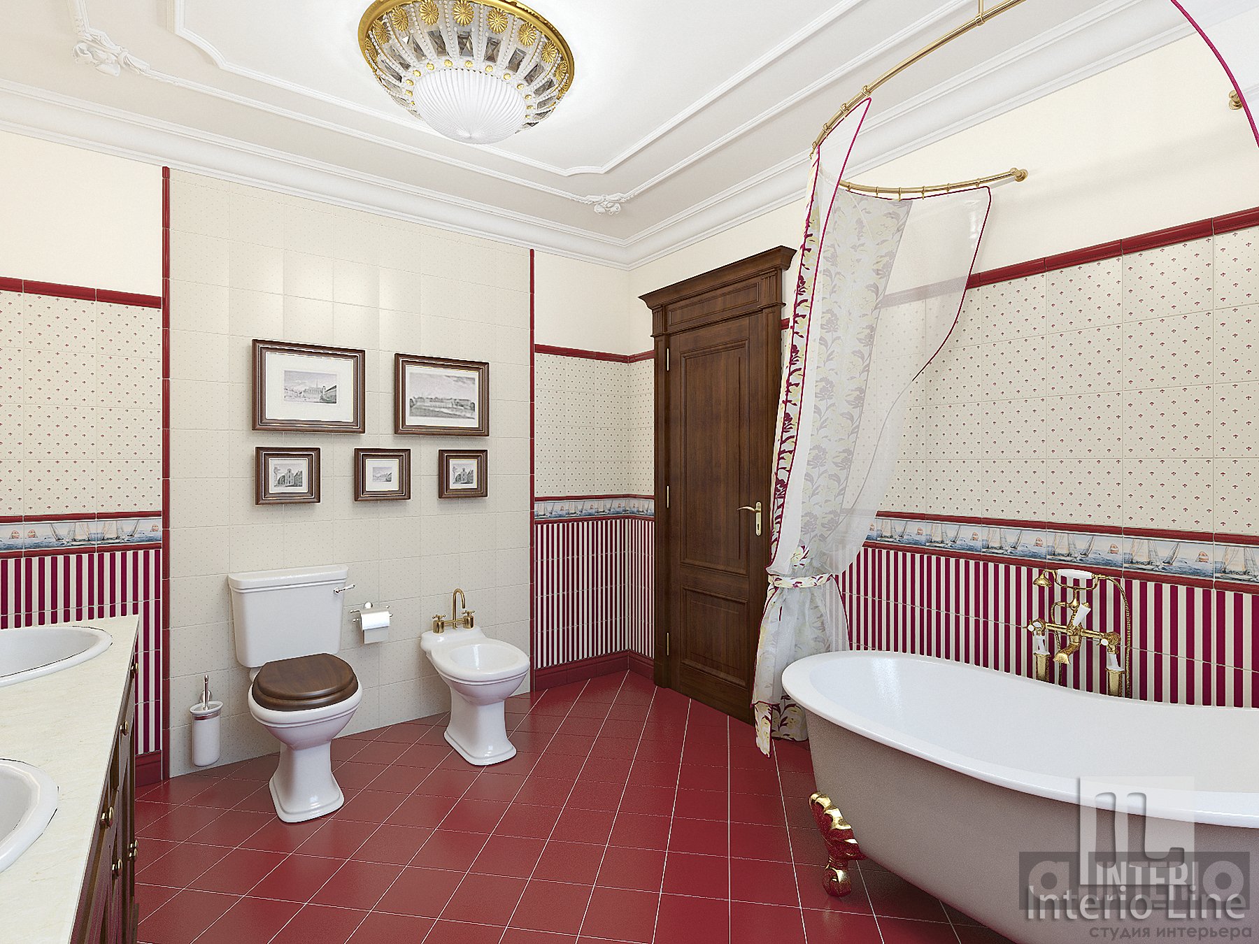 Не все помещения были сделаны традиционном стиле. Например, комнаты детей и санузел 2-го этажа - выполнены в современных ярких дизайн-решениях.