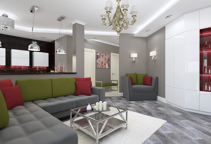 Дизайн квартиры показан как в эскизах, так и на фото - реализации.